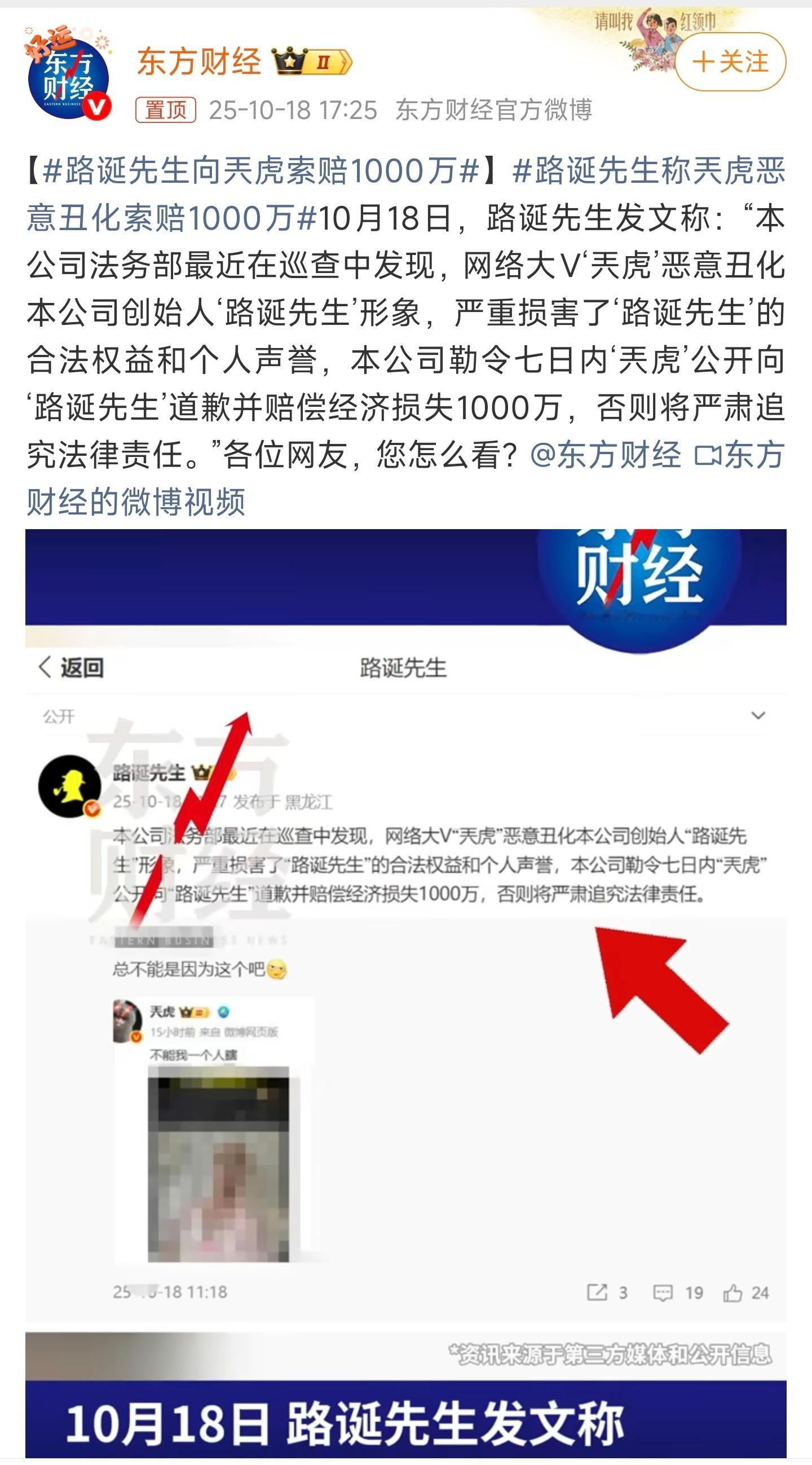 路诞先生向兲虎索赔1000万笑死,卤蛋先生开个玩笑,东方财经当真了,现在的大媒体这么闲的?[笑cry]