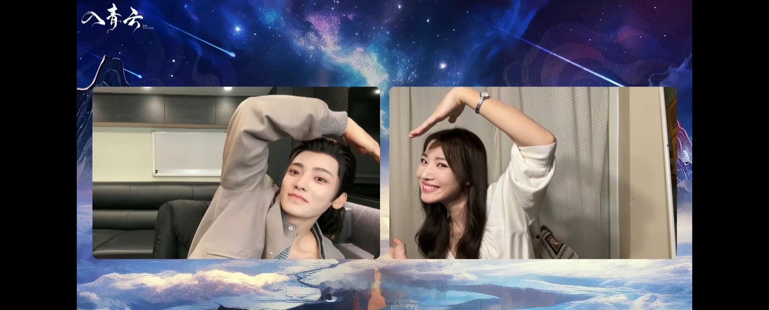 侯明昊卢昱晓直播隔空比心好甜,恭喜入青云加更啦