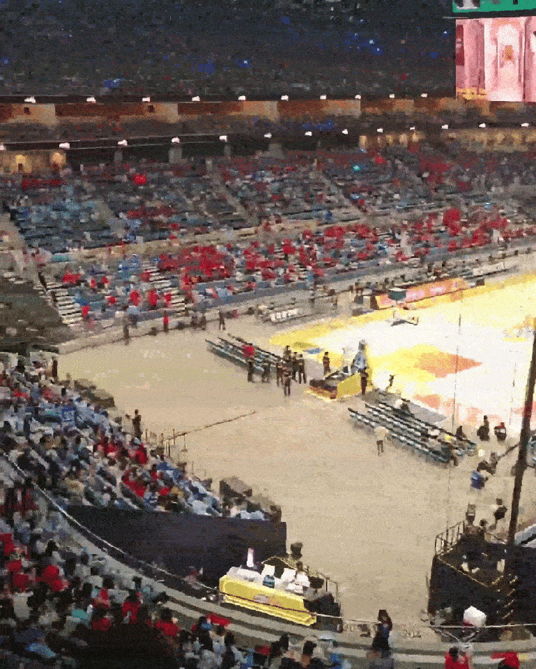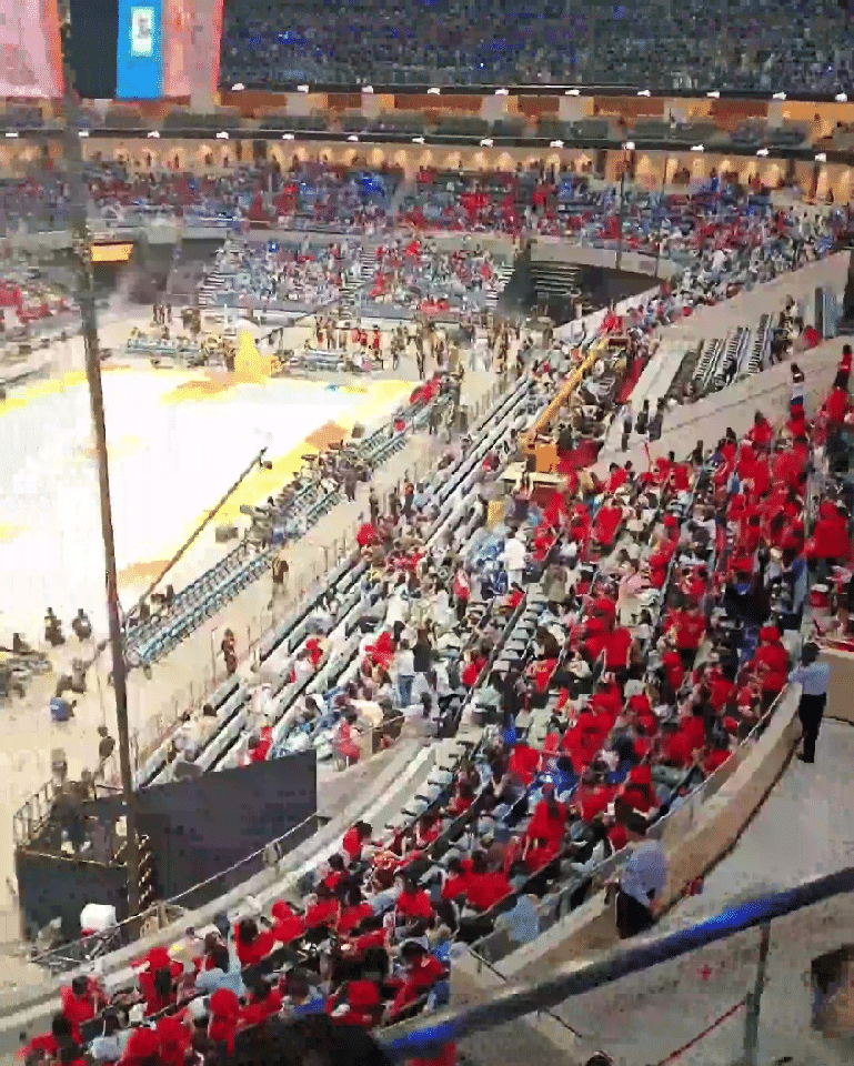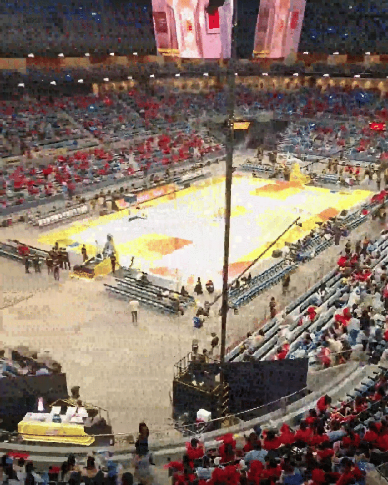 nba聚星名人赛现场任嘉伦家粉丝很多呀,红色蛮好认的[good]​​​