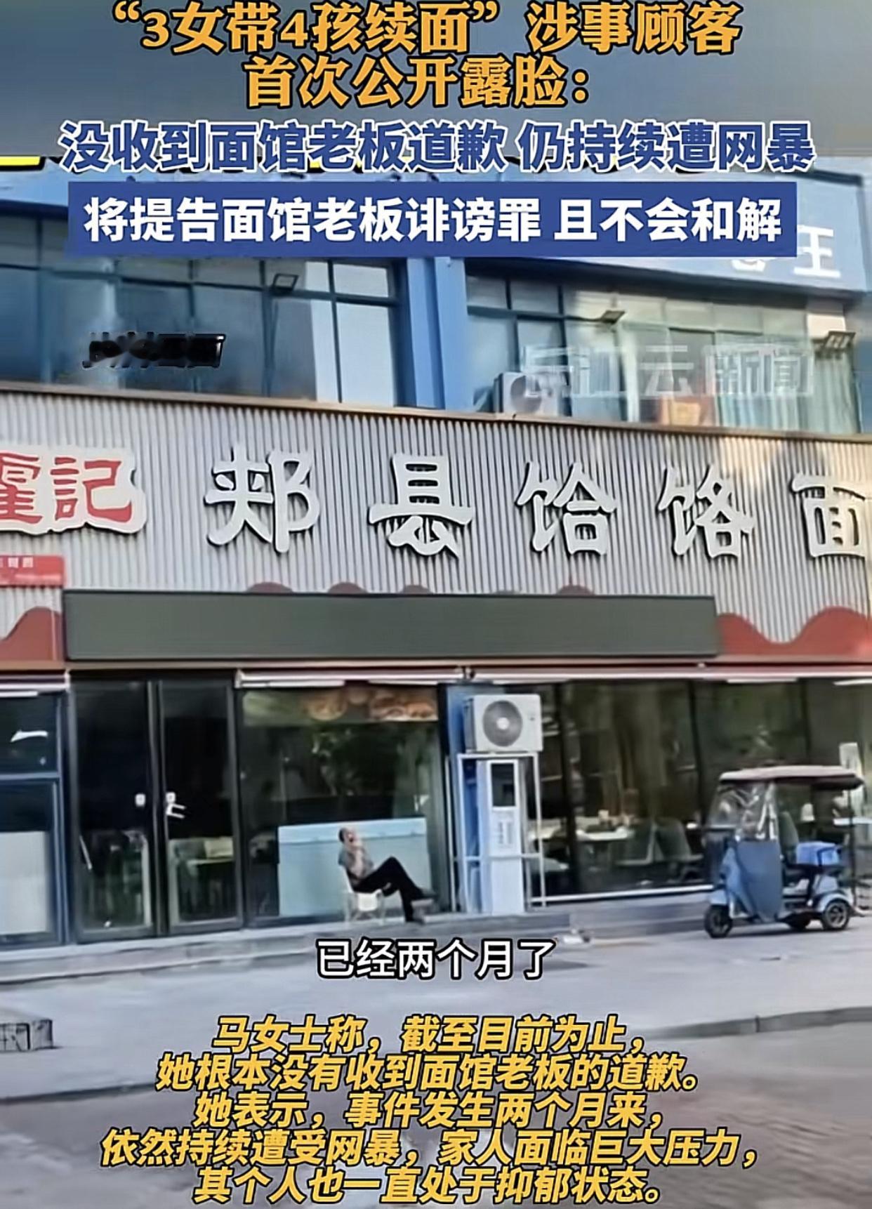 郑州“续面”还没结束! 10月16日,续面女子再次发声:事情已经过去两个多月,面馆老板至今都没有当面道歉,给自己和家人造成了巨大的心理压力,绝不和解,还要追加老板的经济赔偿。 这个事件有2个视频,一个是视频是面馆老板拍的,追到对面饭馆曝光人家说多次续面。第二个视频是顾客报警后调出面馆监控视频,证实点的面就是孩子吃的,其中妹妹就吃了一口。人家续了一次面,第二次去续没有给续,店老板就开始责斥孩子!无奈,女事主给了这家店一个差评。 本来消费140真不算少,而且续一碗面成本才几毛钱,人家消费者并不是占便宜恶意薅羊毛,面馆老板还在直播间说:7名消费者为“七匹狼”,称“吃不了,咱给他倒了,都不让七匹狼吃!”他这话,才彻底激怒了女事主。 (来源:长江云新闻) 就事论事,既然矛盾主题是续面,就单说这份面就好,至于整体花费多少,不是这碗面的背书。这名店老板也是服了你,当面道个歉有那么难吗,都宁可把店关了,也不认错,就为了这点事打算没完没了到什么时候呢?