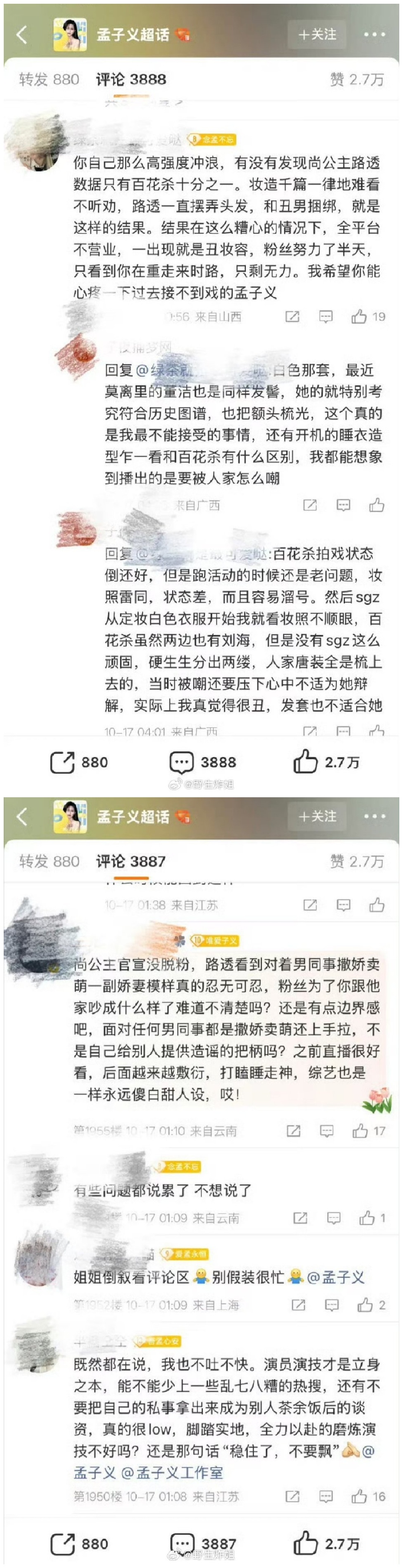 ❽尚公主,孟子义粉开冲工作室账号,要求整改妆造,别再跟李昀锐互动