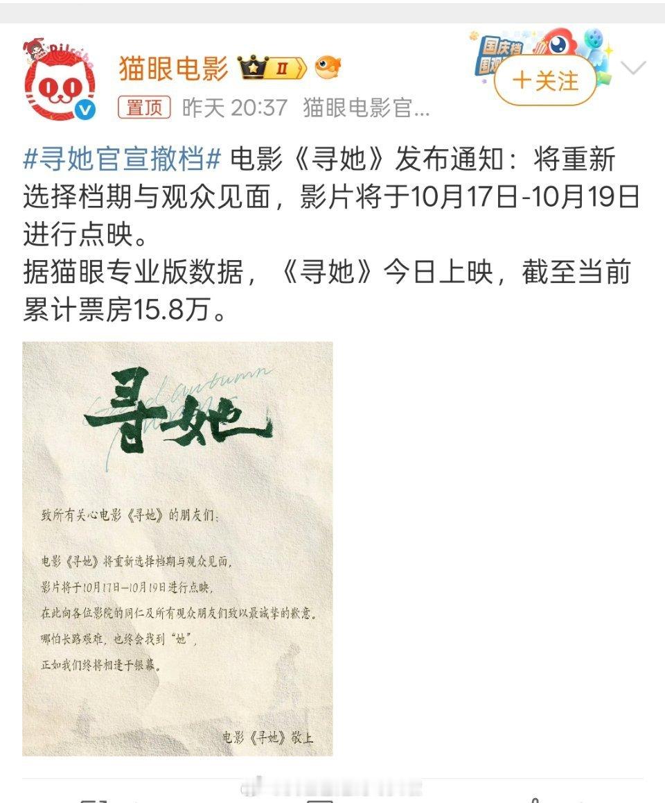 ⑩舒淇白客主演的电影《寻她》官宣撤档