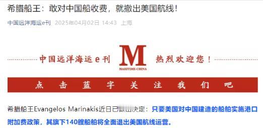 希腊神一样的存在,第一次担保辽宁舰,这一次又为中国站台,是中国的好哥们 希腊船王放言:美国敢对中国船收费,他的140艘船就撤出美国航线 很多人可能记不清了,当年中国从乌克兰买瓦良格号,也就是后来的辽宁舰,要拖回国内的时候遇到不少麻烦。土耳其那边卡了好久,最后还是希腊站出来,主动给瓦良格号做担保,这才让咱们的航母有机会踏上回家的路。 当时希腊不光出担保,还派了自己的拖船和船员帮忙,路上遇到风暴的时候,希腊船员还差点出了危险。这份情,中国一直记在心里。从那之后,两国在航运、经贸上的合作就越来越密,希腊的比雷埃夫斯港,就是中国和希腊联手打造的样板,现在都成了地中海最忙的港口之一。 最近这事儿更让人佩服,美国那边又想搞小动作,说要对中国的商船额外收费,理由扯得没边儿。这话刚传出来,希腊船王直接就炸了,公开放话要是美国敢这么干,他手里的140艘船立马撤出美国所有航线。 这位船王可不是随便说说的,他手里的船队规模在全球都排得上号,140艘船涵盖了集装箱船、散货船,还有油轮,要是真撤出美国航线,美国的进出口物流得乱套。要知道美国很多农产品、工业用品都得靠海运,少了这么大一支船队,运费得涨上天,商家和老百姓都得跟着吃亏。 有人可能会问,希腊船王为啥这么力挺中国?其实不只是因为当年的交情,更因为这些年中国和希腊的合作早就绑在了一起。中国是全球最大的制造业国家,货物进出口量常年稳居世界第一,而希腊船王的船队,很大一部分业务就是帮中国运货,从东南亚的原材料到欧洲的工业产品,双方合作得顺风顺水。 美国要是对中国商船收费,看似针对中国,其实也在断希腊船王的财路。船王心里门儿清,跟中国合作稳赚不赔,中国企业讲信誉、付款快,从来不会像有些国家那样拖拖拉拉。而且中国还帮希腊把比雷埃夫斯港盘活了,让希腊的航运业多了一个重要的中转站,光这一项就给希腊创造了上万个就业岗位。 更关键的是,中国和希腊在经贸合作上一直是平等互利,从来不会像美国那样搞霸权主义,要求别人选边站。希腊船王之前在采访里就说过,跟中国做生意踏实,不用看谁的脸色,双方是真真正正的合作伙伴。 这次美国想搞收费,本质上就是想通过打压中国商船,限制中国的对外贸易。可他们没想到,希腊船王会这么硬气。要知道希腊虽然是北约国家,但在很多事情上都有自己的主见,不会盲目跟着美国走。尤其是在经济领域,希腊更清楚谁才是真正能带来好处的伙伴。 希腊船王的140艘船要是真撤出美国,受影响的不只是美国的物流,还有美国的农业和制造业。美国的大豆、玉米要出口到亚洲,很多时候得靠希腊的船队运输;美国从中国进口的电子产品、日用品,也得靠这些船运回国。一旦船队撤走,美国国内的供应链很可能会出现断裂,物价上涨是必然的。 而且这事儿还会影响其他国家对美国的看法,连北约盟友的船王都不愿意配合美国的霸权行为,其他国家更不会轻易跟着美国走。中国这些年在国际上的合作一直坚持互利共赢,跟中国合作过的国家都知道,中国从不搞零和博弈,而是真心实意地帮助合作伙伴发展。 希腊船王这次站出来为中国站台,其实也是在维护自己的利益,更是在维护全球航运业的公平秩序。全球航运业讲究的是自由、公平,要是每个国家都像美国这样搞单边制裁、额外收费,整个行业都会乱套。希腊作为航运大国,自然不允许这种事情发生。 从当年担保辽宁舰,到现在力挺中国商船,希腊船王的每一次选择都很清醒。他知道跟中国合作有未来,跟中国做朋友不吃亏。而美国要是还不明白这个道理,继续搞霸权主义,只会把更多的合作伙伴推向中国这边。 现在全球经济一体化越来越深入,没有哪个国家能独善其身。美国要是真敢对中国商船收费,最终只会搬起石头砸自己的脚。而希腊船王的140艘船,就是对美国霸权最有力的反击,也是对中国最实在的支持。 这份友谊,不管是中国还是希腊,都会好好珍惜。未来双方在航运、经贸、文化等领域的合作,肯定会越来越深入,成为国家之间友好合作的典范。而美国要是还执迷不悟,最终只会被更多国家抛弃,在国际上越来越孤立。