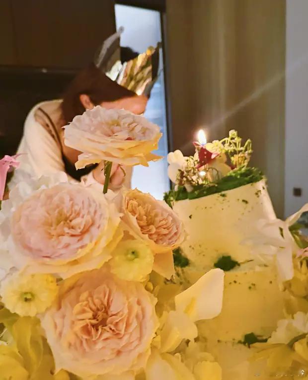 分享娱乐[超话]分享娱乐 赵丽颖戴着搞怪眼镜,桌子上放满鲜花,画面温馨。