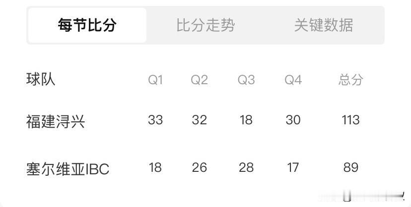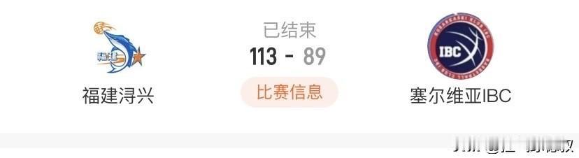 福建浔兴狂胜塞尔维亚IBC!113-89展现强势统治力 各位球迷朋友们,今天给大家带来一场精彩的篮球对决!福建浔兴主场迎战塞尔维亚IBC队,最终以113比89的大比分优势轻松取胜。 从每节比分就能看出福建队的强势开局,首节就轰下33分,直接打了对手一个18-33!之后第二节32-26、第三节18-28、第四节30-17,全程压制对手,最终狂胜24分。 球员表现更是亮点十足!曾凌铉狂砍26分成为得分王;邹阳17分+7篮板+5抢断,攻防两端都很出彩;王海东16分,黎伊扬14分还送出9次助攻串联全队;杨曦皓14分+10篮板+3盖帽,在内线筑起禁飞区。多人得分上双,团队配合行云流水,这样的表现确实值得点赞! 这场比赛福建浔兴无论是进攻火力还是整体配合都展现出了很高的水准,也让我们看到了他们这段时间训练的成果!福建男篮