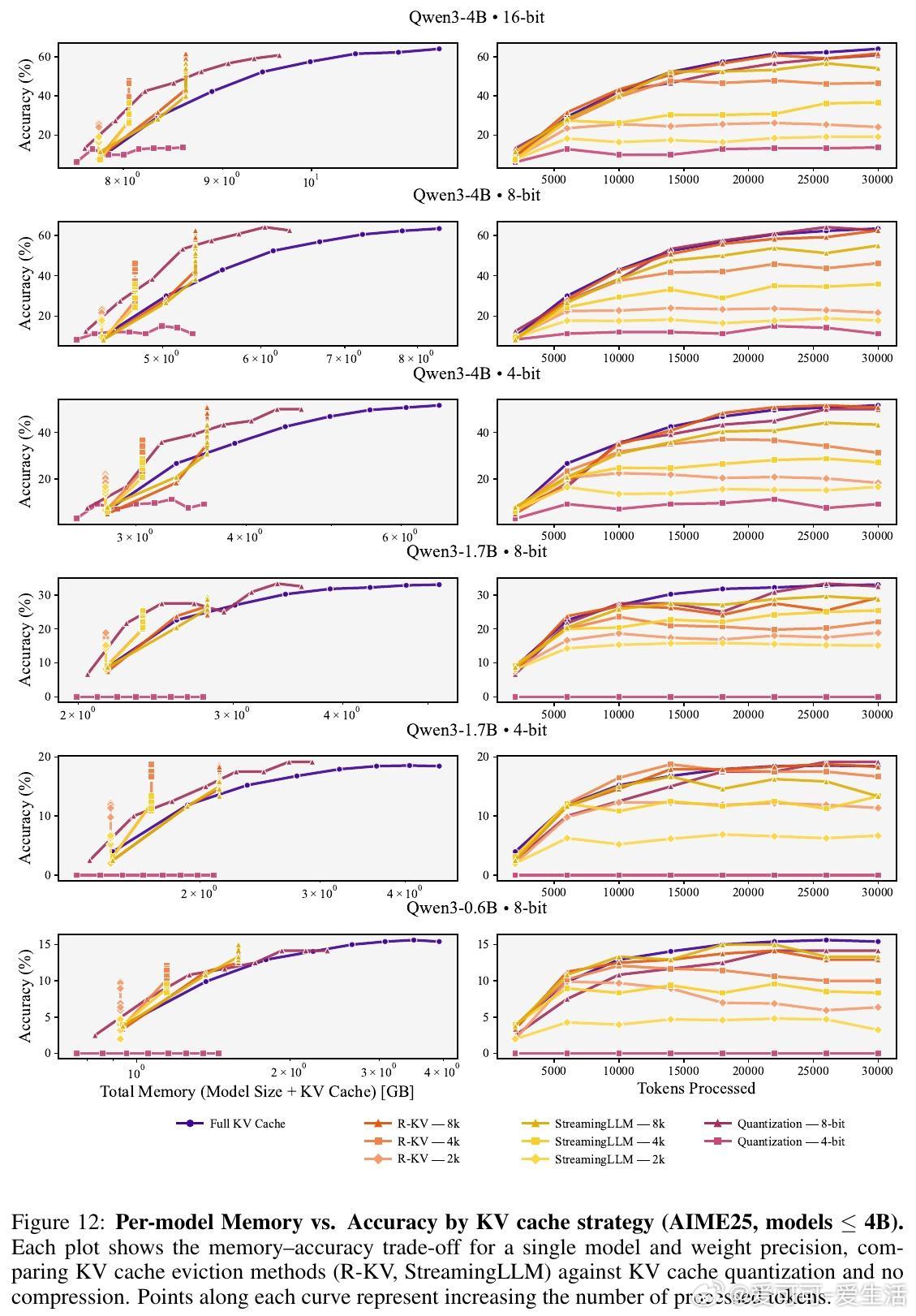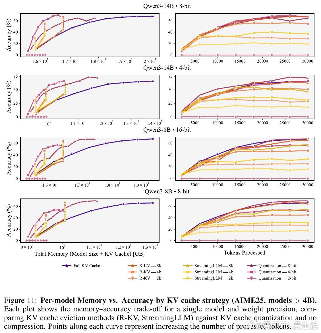 - 对小规模模型,应优先保证权重容量和较高精度,辅以KV缓存驱逐。