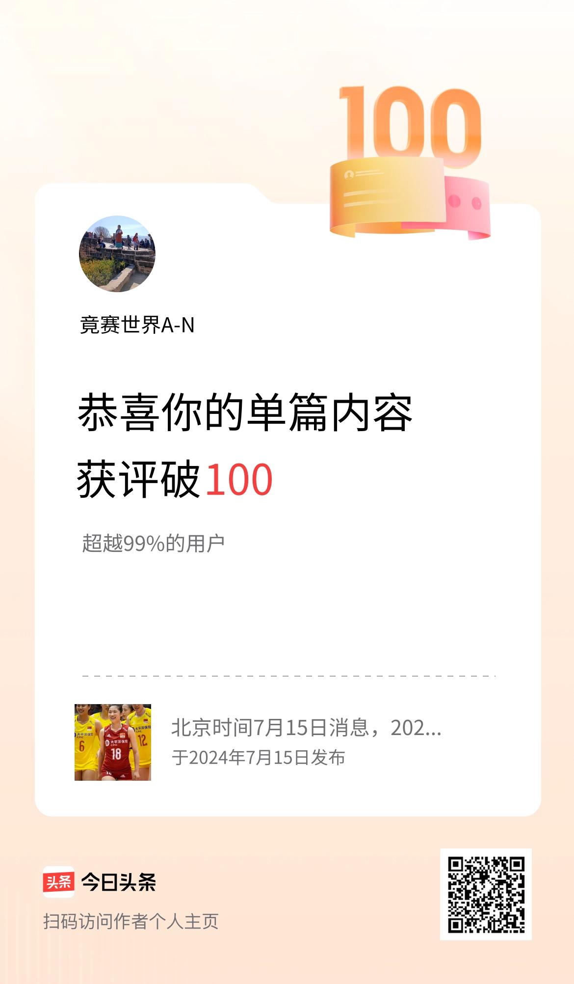 单篇内容获评论量破100啦!