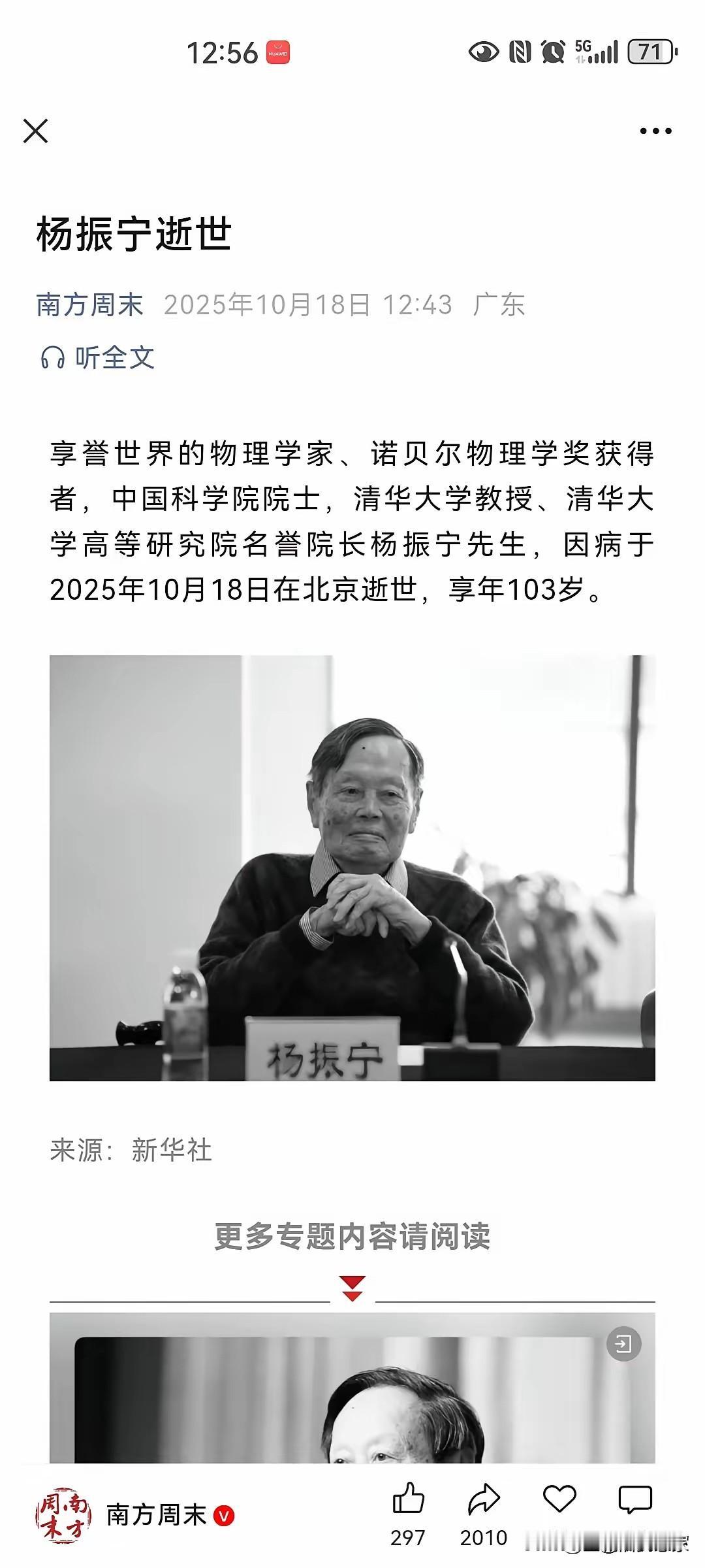 10月1日才过的103岁寿辰,不成想短短半月,老人家就以仙逝,35岁即获得诺贝尔