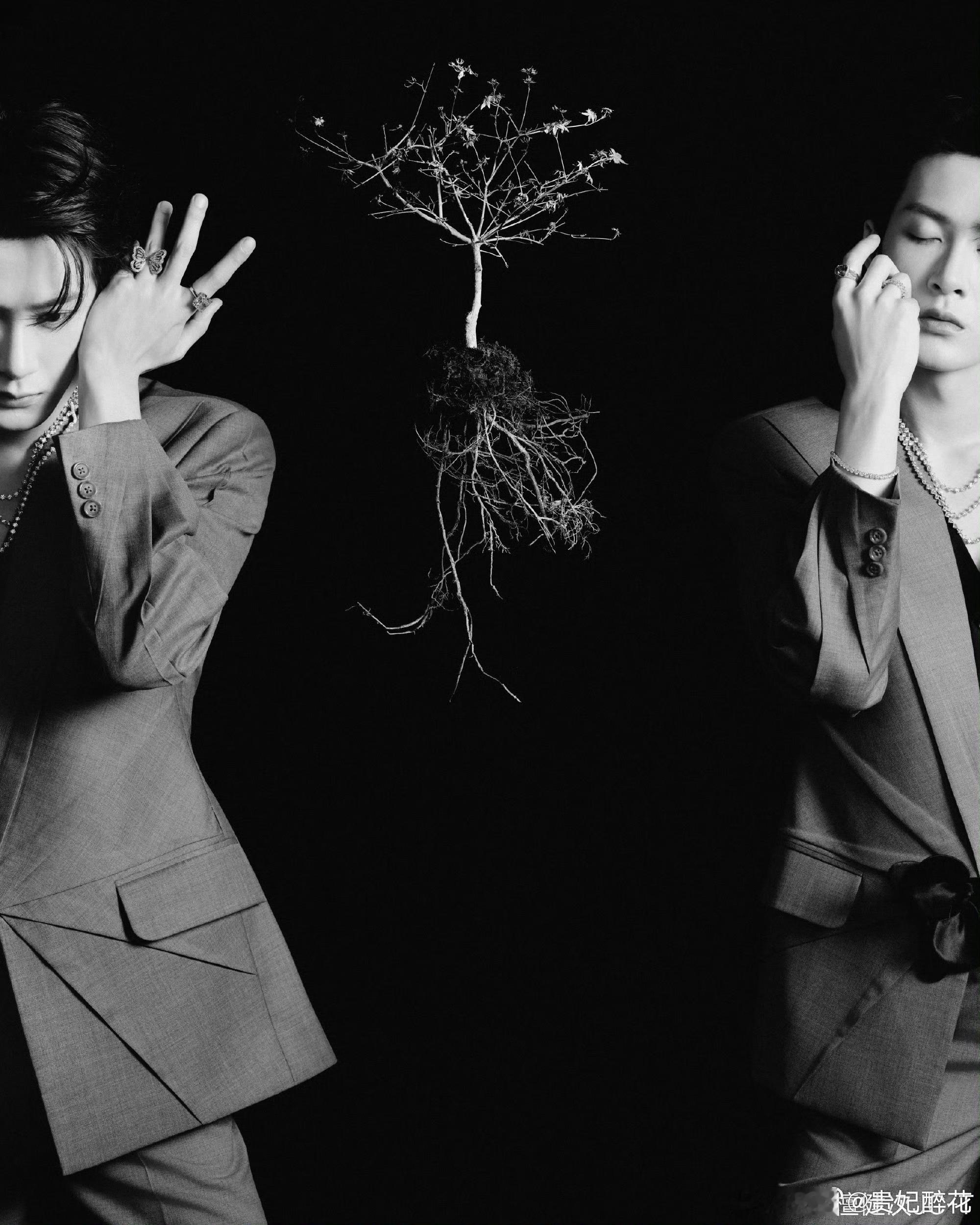 我们代言人登场!今晚受邀出席戴比尔斯Essence of Nature高级珠宝展,檀健次一身灰色切割剪裁西装,搭配De Beers高级珠宝作品亮相,黑白色调与彩色画面质感交织,明暗光影勾勒出帅气轮廓,同时以枯叶、树枝等自然元素的融入,极具艺术先锋感!整体造型尽显矜贵优雅的绅士格调,神秘又充满张力~ 📸