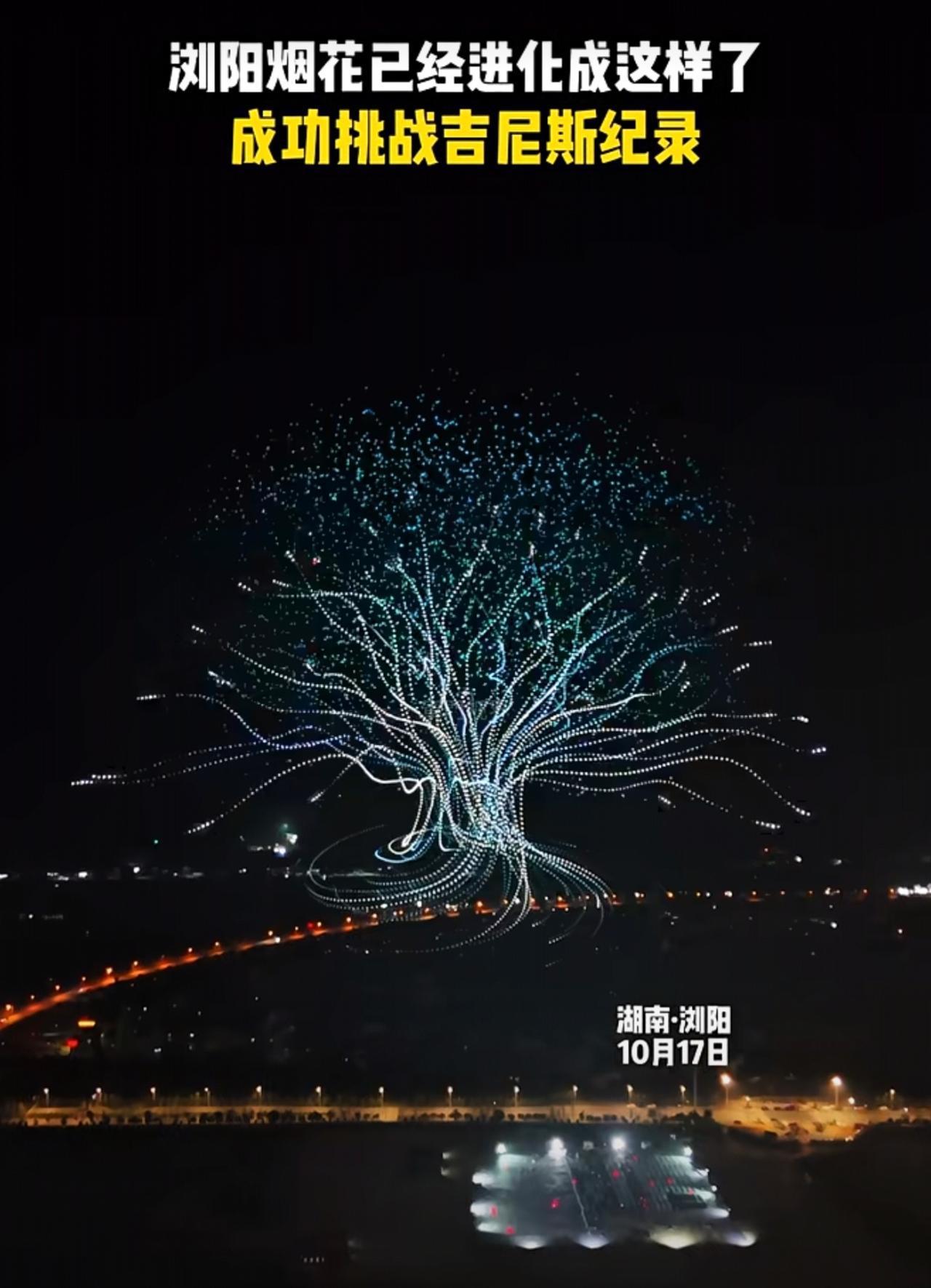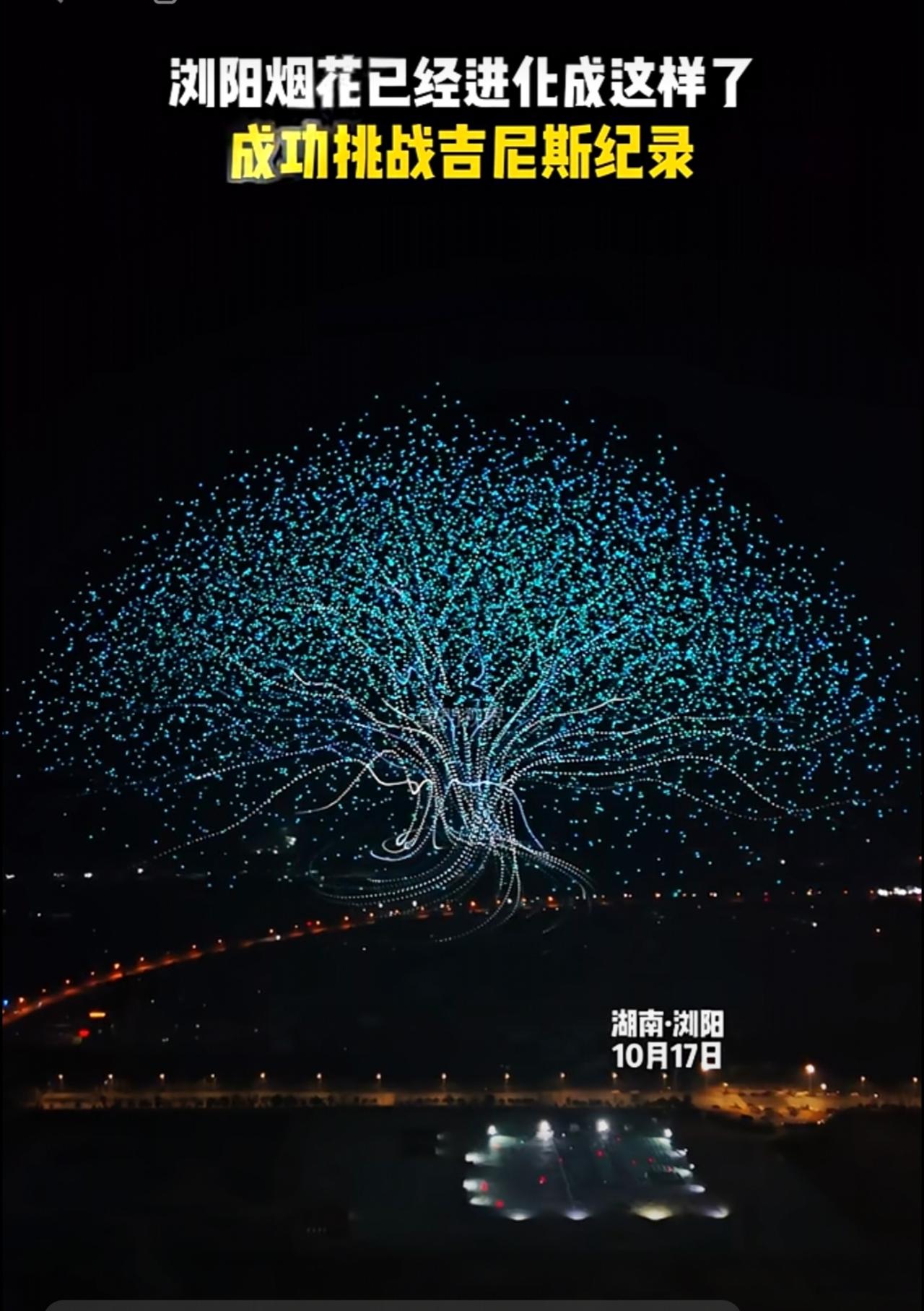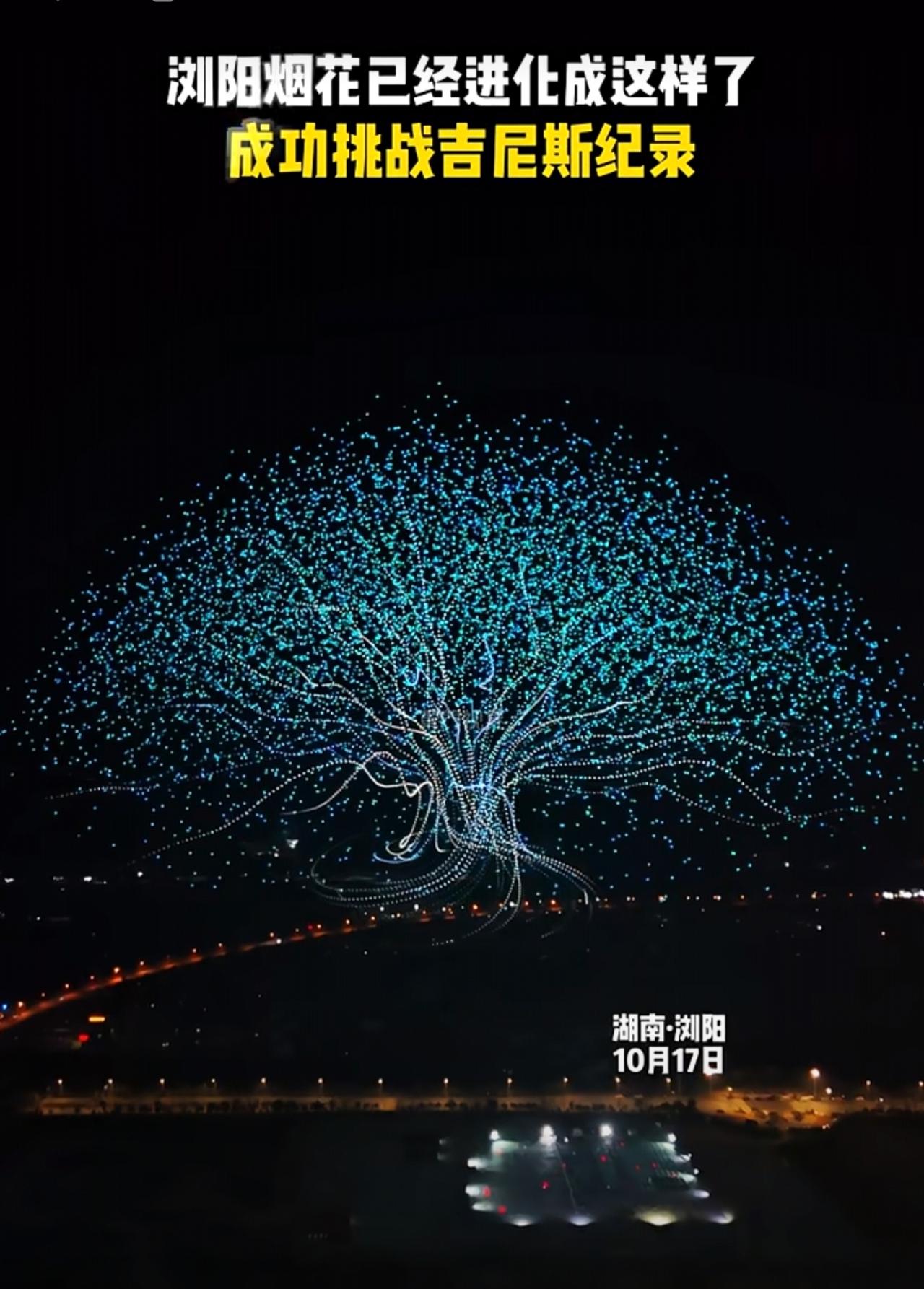浏阳烟花已经进化成这样了,成功挑战吉尼斯世界纪录!生命树无人机表演无人机焰火