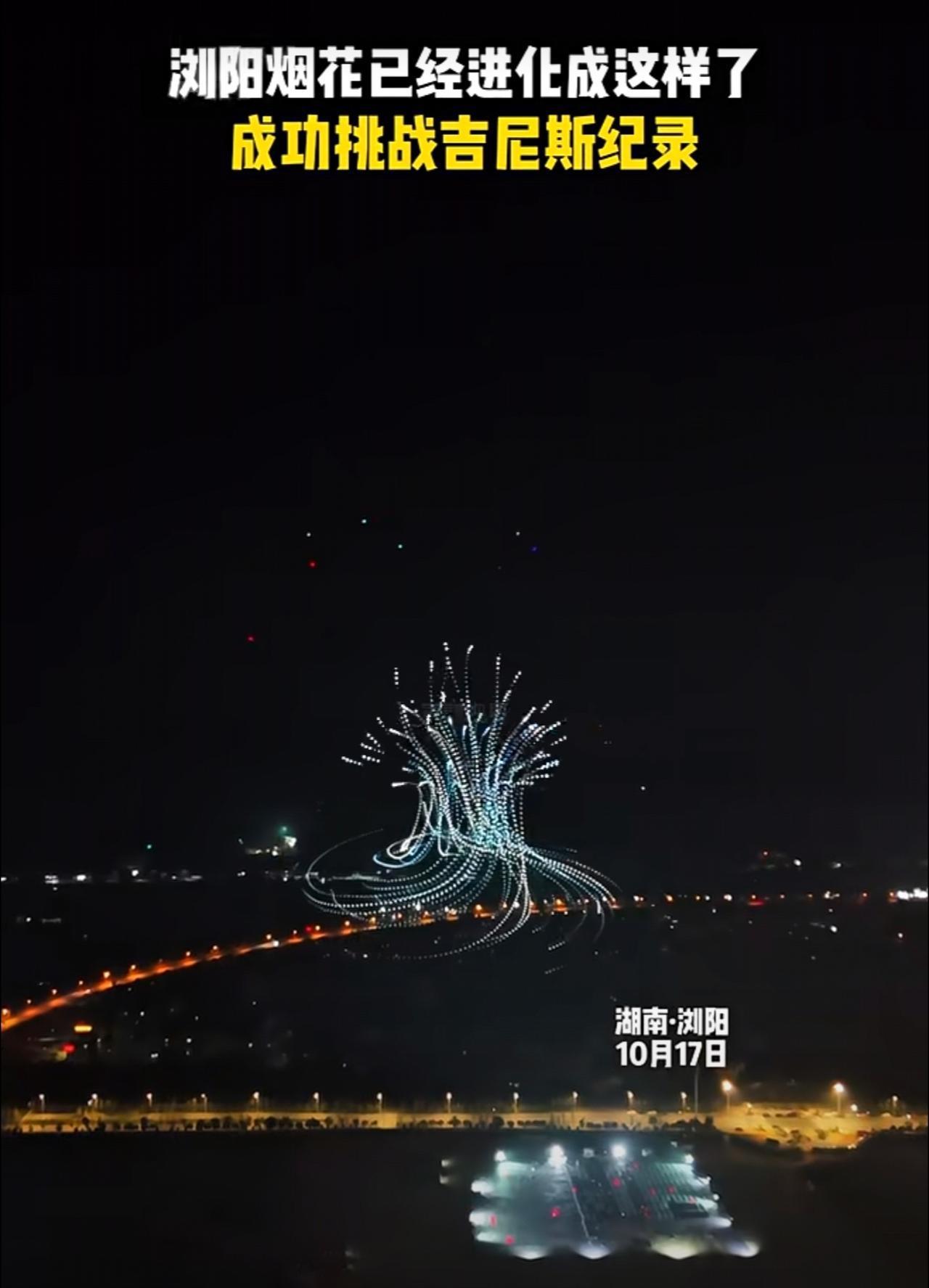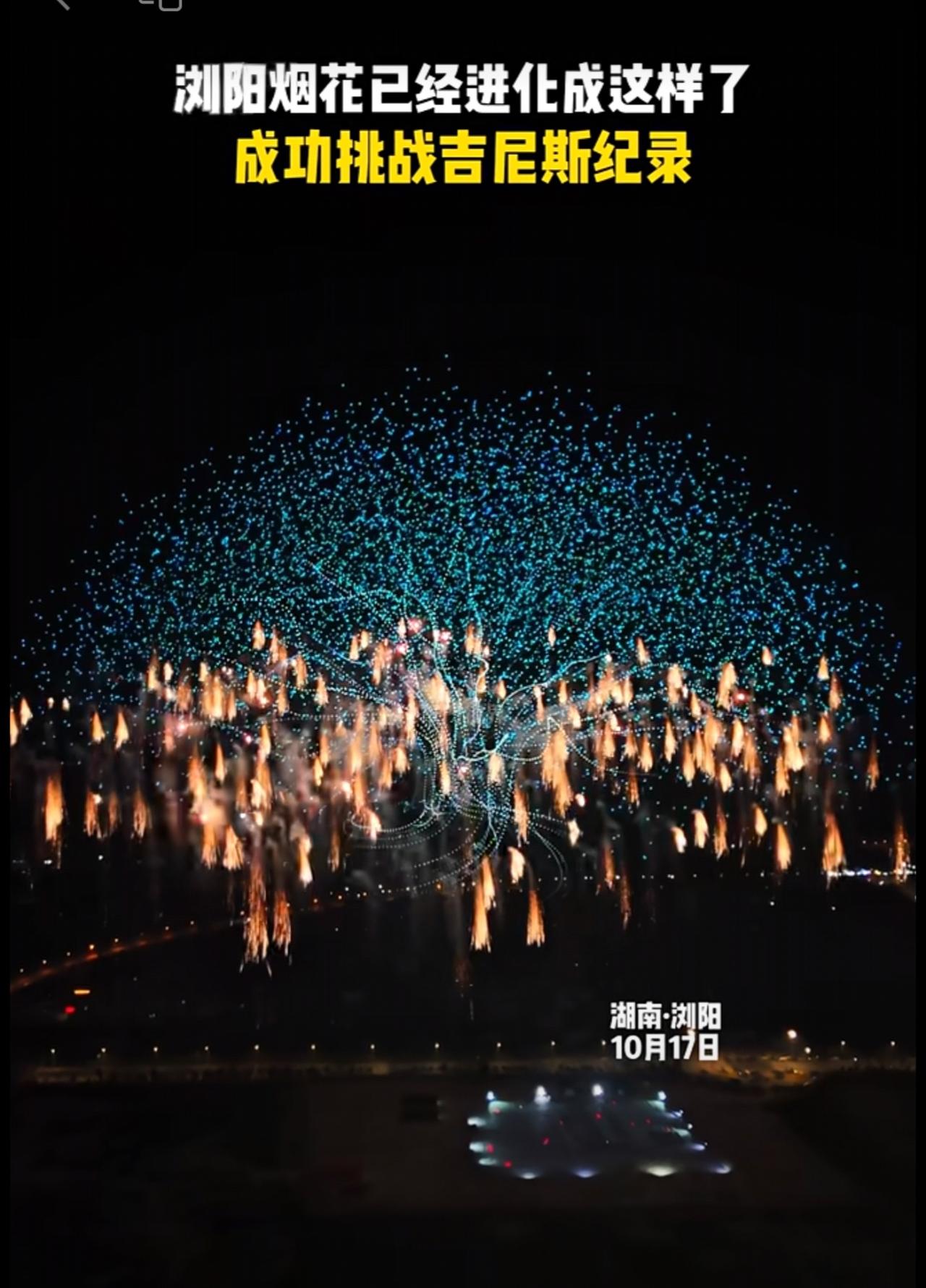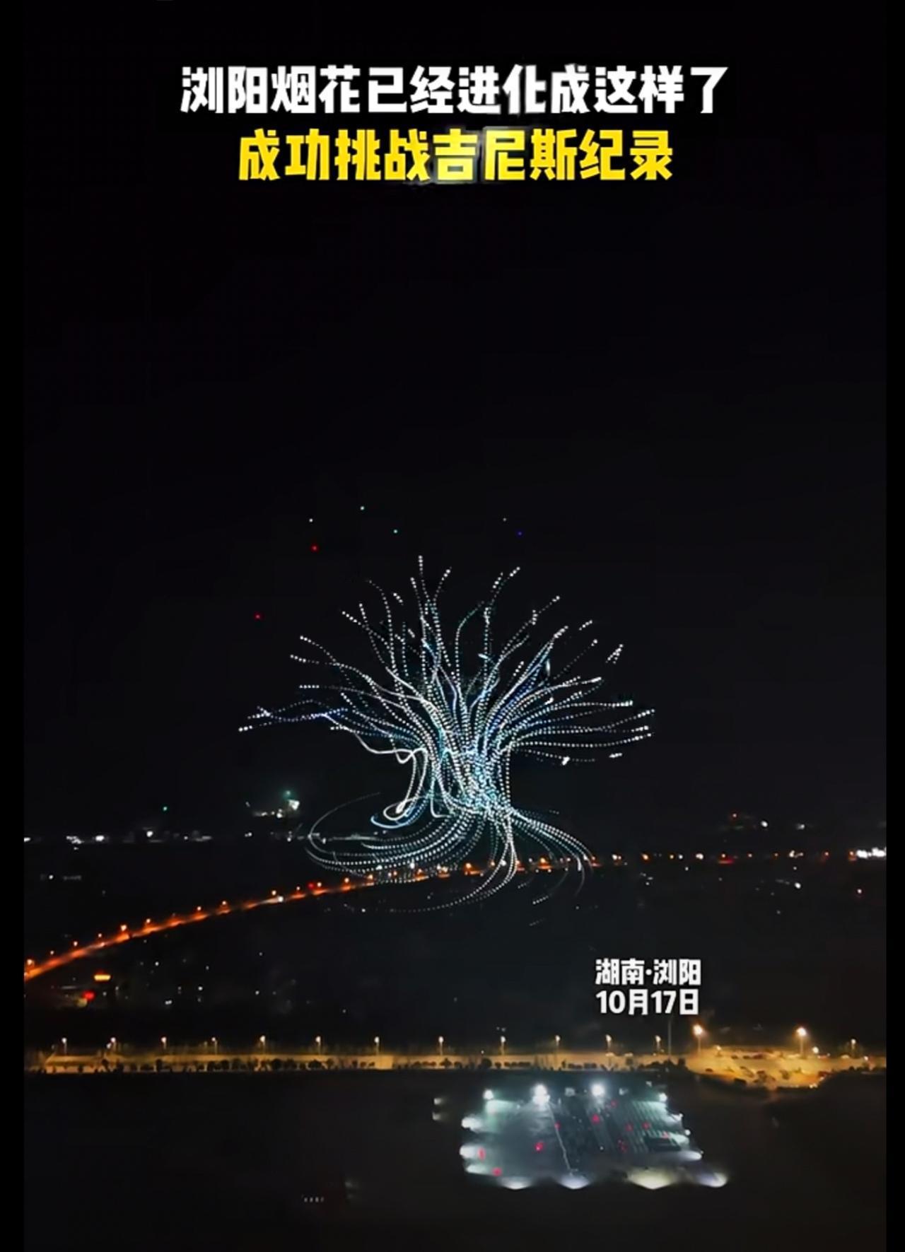 浏阳烟花已经进化成这样了,成功挑战吉尼斯世界纪录!生命树无人机表演无人机焰火