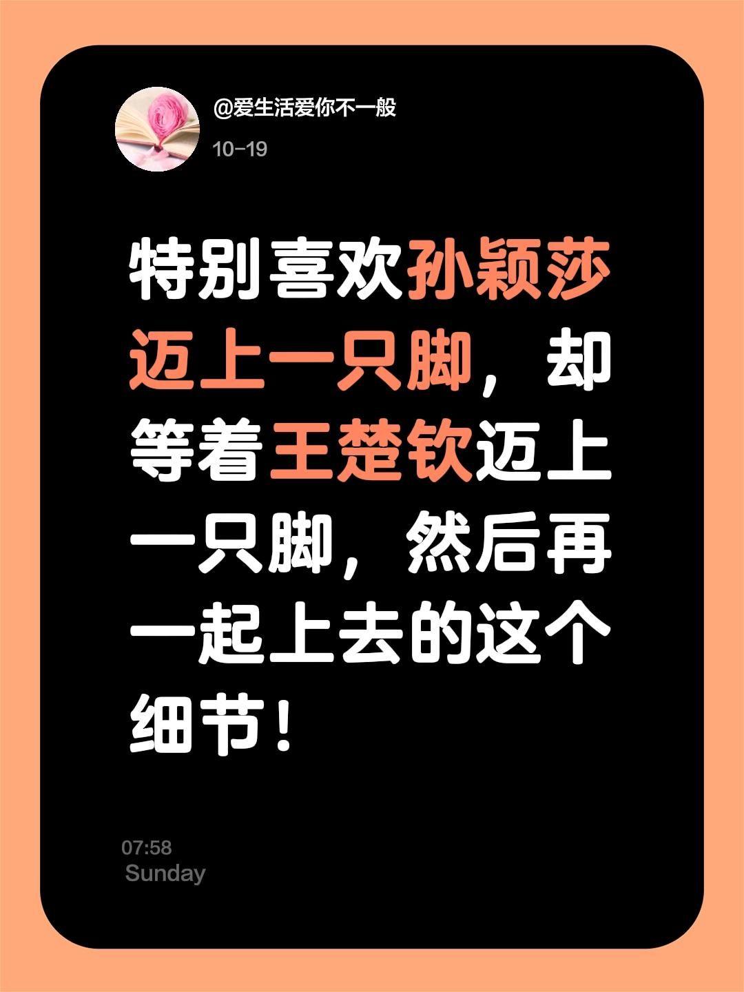 特别喜欢孙颖莎迈上一只脚,却等着王楚钦迈上一只脚,然后再一起上去的这个细节!