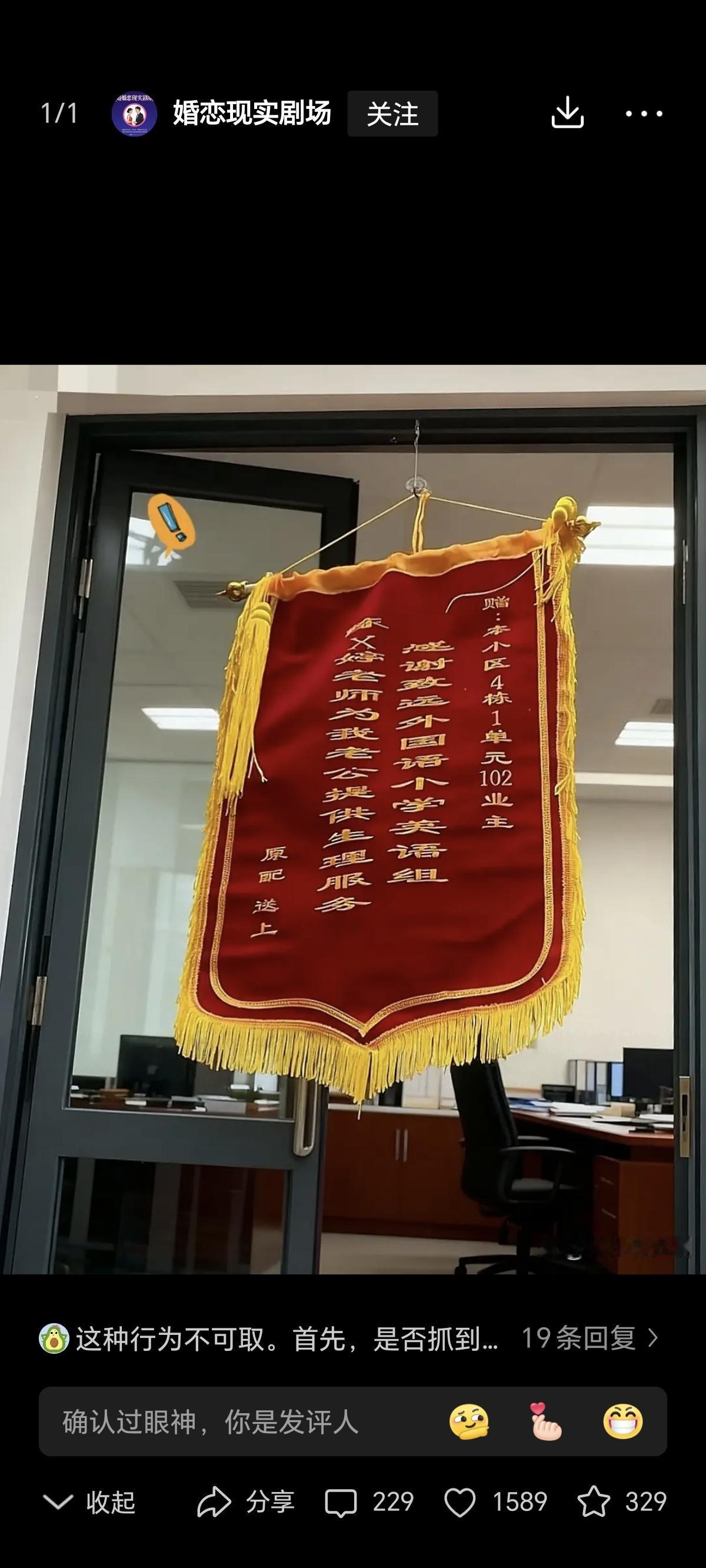 太劲爆了 南京一所小学女教师和学生爸爸发生关系。孩子妈妈知道后没哭没闹,直接做了面锦旗送到学校办公室。这事一下子火了,全网都在讨论。 原配太淡定了。这招太狠了。不吵不闹,一面锦旗让全学校都知道了。谁从那儿过都得看一眼,想想上面写的啥。 那个女教师每天上班都得面对这个。学生家长接送孩子也能看见。这压力,想想都头皮发麻。这次这个妈妈聪明多了。送锦旗不违法,但比打人有用多了。大家都知道了,还不用负法律责任。 公共单位都受不了锦旗批评,个人更不用说了。这位妈妈也是豁出去了。 教育系统数据显示,95%的学校对师德失范事件高度敏感,公开化的负面信号会倒逼快速处理。锦旗把隐私纠纷转化为校园公共事件,比私下投诉更能推动学校重视,毕竟学校需维护公众信任,容不得师德污点挂在明面上。 婚姻纠纷中,仅30%的激烈冲突能让过错方付出实际代价,而这种“软曝光”既规避了肢体冲突的法律风险,又精准打击对方要害。女教师的职业声誉与公众评价深度绑定,锦旗带来的持续舆论压力,比任何指责都更难承受。 看似淡定的做法,实则是权衡后的理性反击。原配没有陷入情绪内耗,而是用最体面的方式掌握主动权,既让过错方暴露在公众视野中承担后果,又保留了自己的尊严。这种方式打破了“受害者必须哭闹”的固有认知,证明理性维权比盲目发泄更有力量,也给类似遭遇的人提供了更可行的参考。高校教师婚外情 老师和学生纠纷 家长教师关系 女教师丑闻