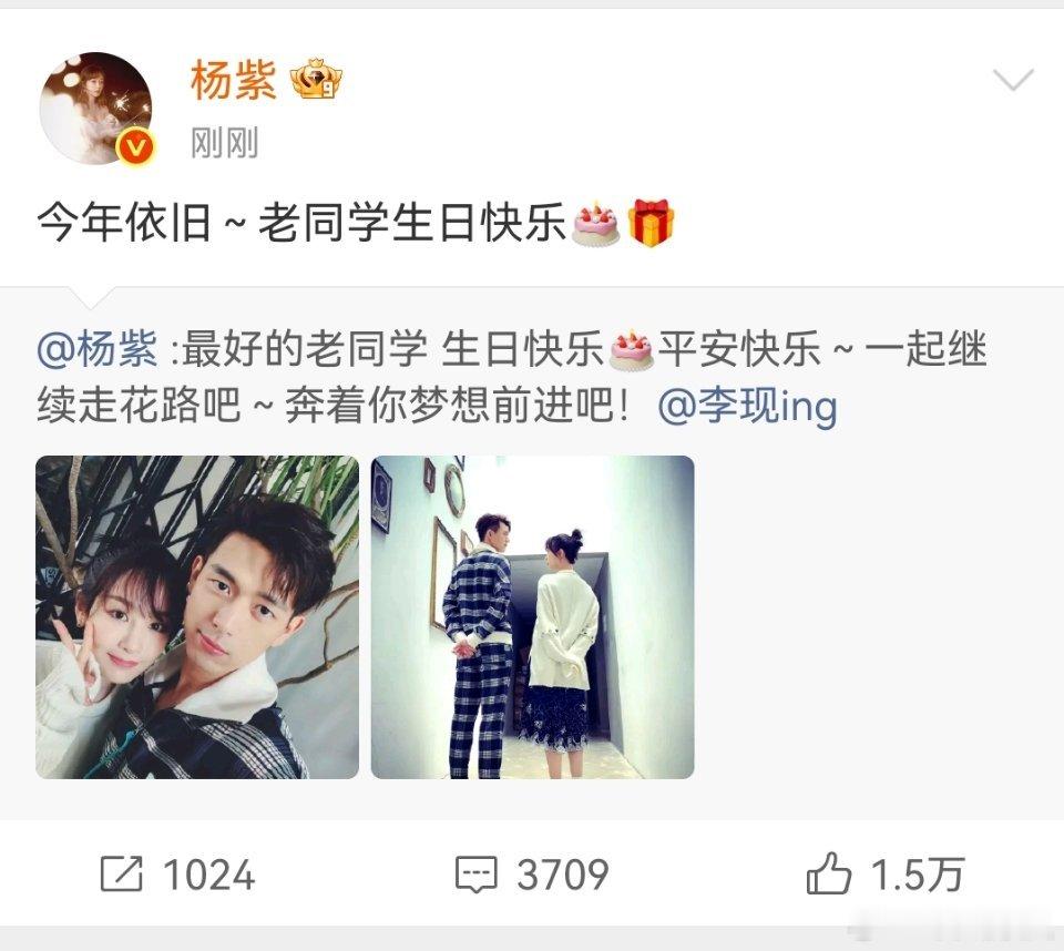 杨紫和李现的关系真好,印象里从亲爱的热爱的爆火那一年开始就互相生日祝福吧​​​