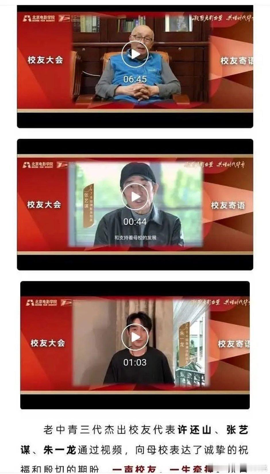 北电75周年庆典,老中青校友杰出代表:许还山,张艺谋,朱一龙