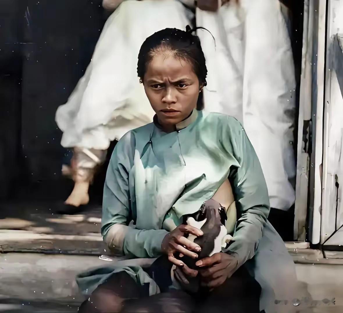 画面中的这个女子,正在给宠物喂奶,也许有些人都不敢相信这是真实的事情,但这确实是当年真实发生的历史,据说这个女子是越南人,当时越南也被西方殖民,女子怀里的这条小狗,是殖民者的宠物,当时的殖民者就是如此对待越南人,现在看来,这是多么的野蛮!