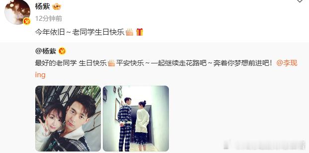 杨紫转发6年前微博给李现庆生杨紫转发祝李现生日快乐 杨紫连续七年庆生,一句 “老同学生日快乐”,是友情最好的仪式感 ​​​