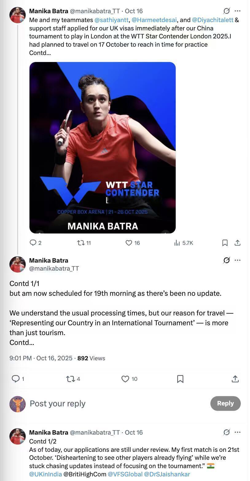 也请 印度驻英国大使馆帮帮我的队友们,让他们尽快拿到签证。