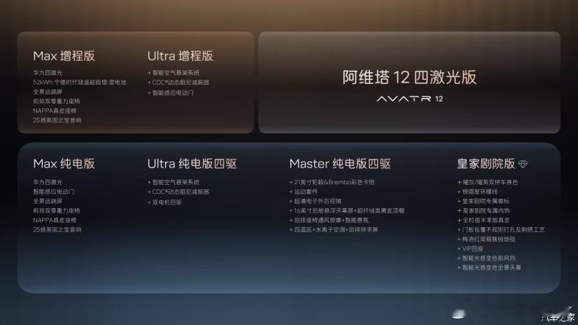 阿维塔12四激光版预售很显然阿维塔12在硬件上是要对标鸿蒙智行里面的9系车型的,