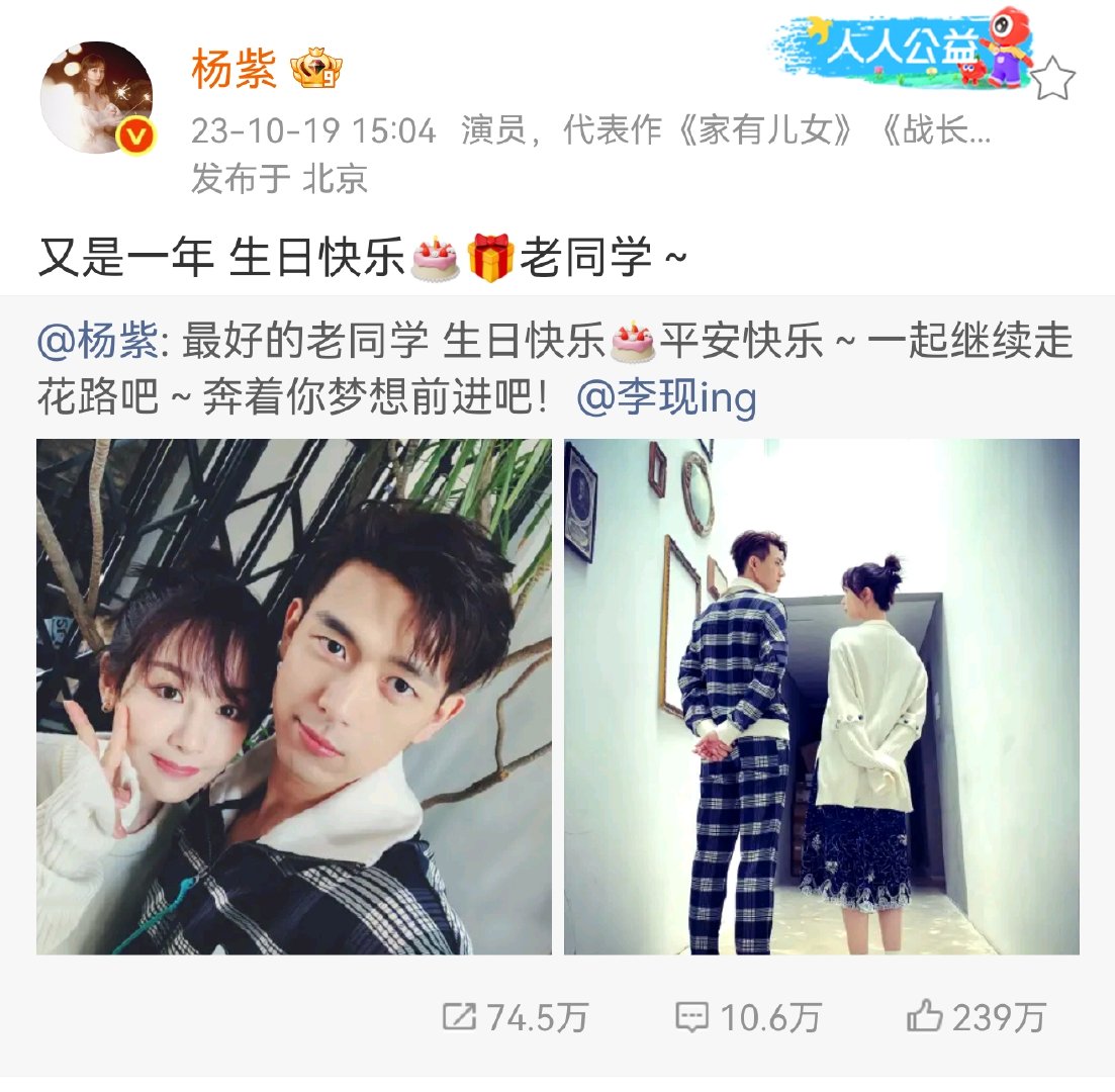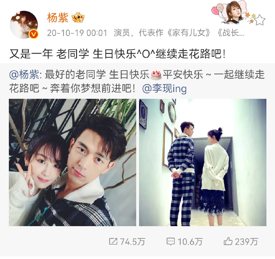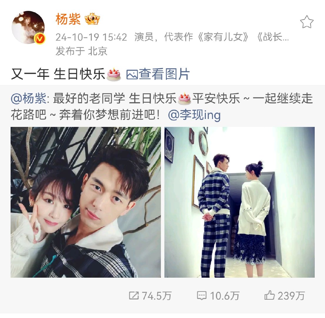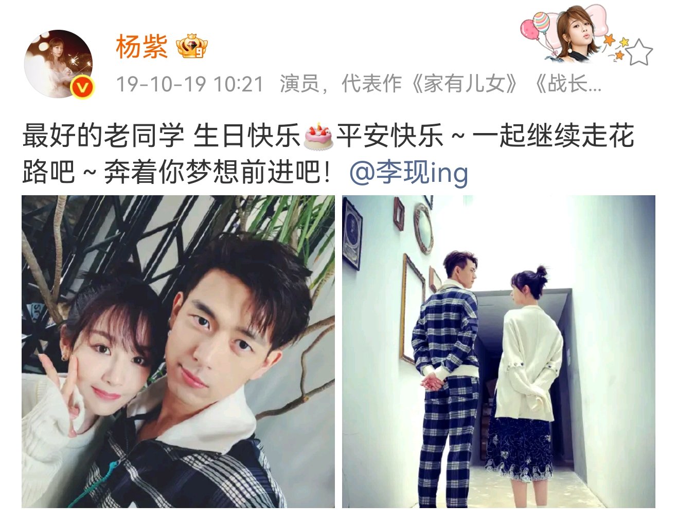 杨紫连续七年发博为李现庆生杨紫连续七年为李现庆生杨紫:今年依旧~老同学生日快乐