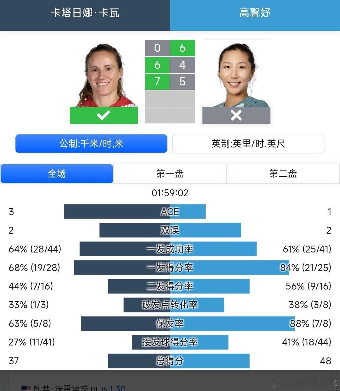 高馨妤🇨🇳6-0/4-6/5-7不敌5号种子卡瓦🇵🇱,无缘晋级决胜轮。下一站加油![加油]