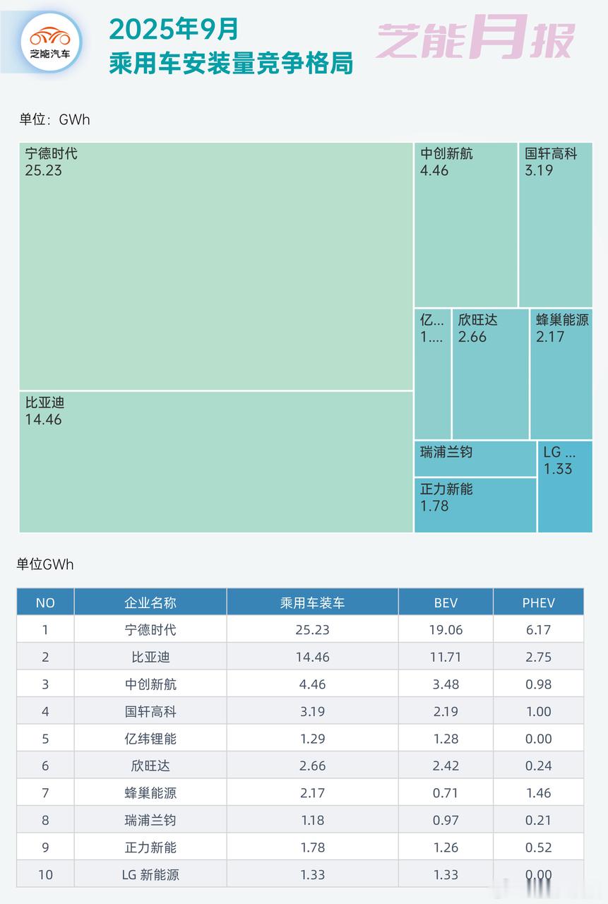 9 月中国动力电池装车量规模效应显著,宁德时代、比亚迪、中创新航位列前三。磷酸铁锂在头部企业中占绝对主导地位。应用端以纯电动乘用车为装车主力。