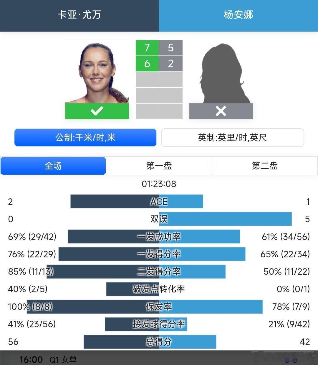 外卡参赛的小将杨安娜🇨🇳5-7/2-6不敌3号种子尤万🇸🇮,无缘决胜轮。下一站加油!