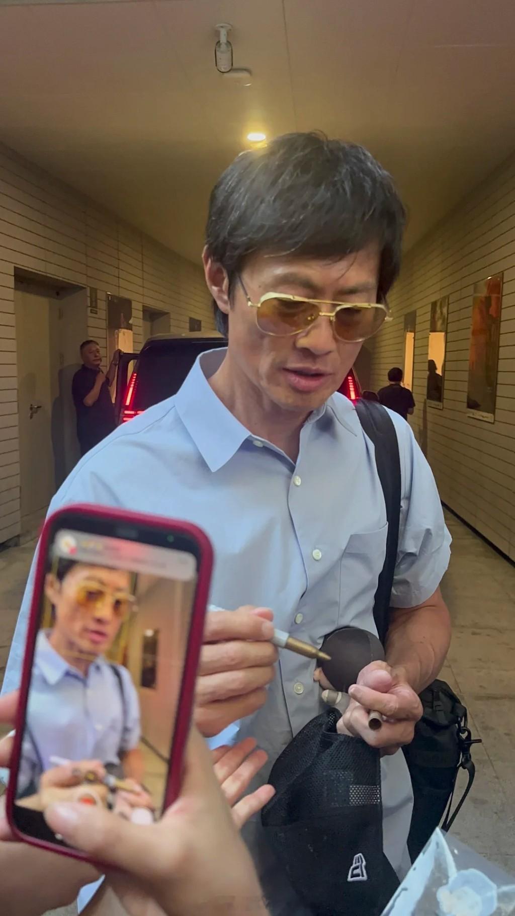 黄德斌近一年来与叶童合作黑色喜剧《唔讲得》,叫好叫座,到多地巡回演出,最近一行人到上海公演。黄德斌每日获不少粉丝在门外等候,而他亦表现亲民,经常在演出前后为粉丝签名,不少网民在小红书上分享追星影片,黄德斌有如开粉丝签名会一样。