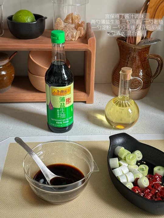 宫保鸡丁好吃的秘诀在它的灵魂酱汁,这里要夸夸这款薄盐生抽~它的盐度低,不会因为过咸遮盖食材的本味而且豉香味很足,可以给食材提鲜增香,调出来的酱汁咸鲜度刚刚好,比普通酱油好多了。