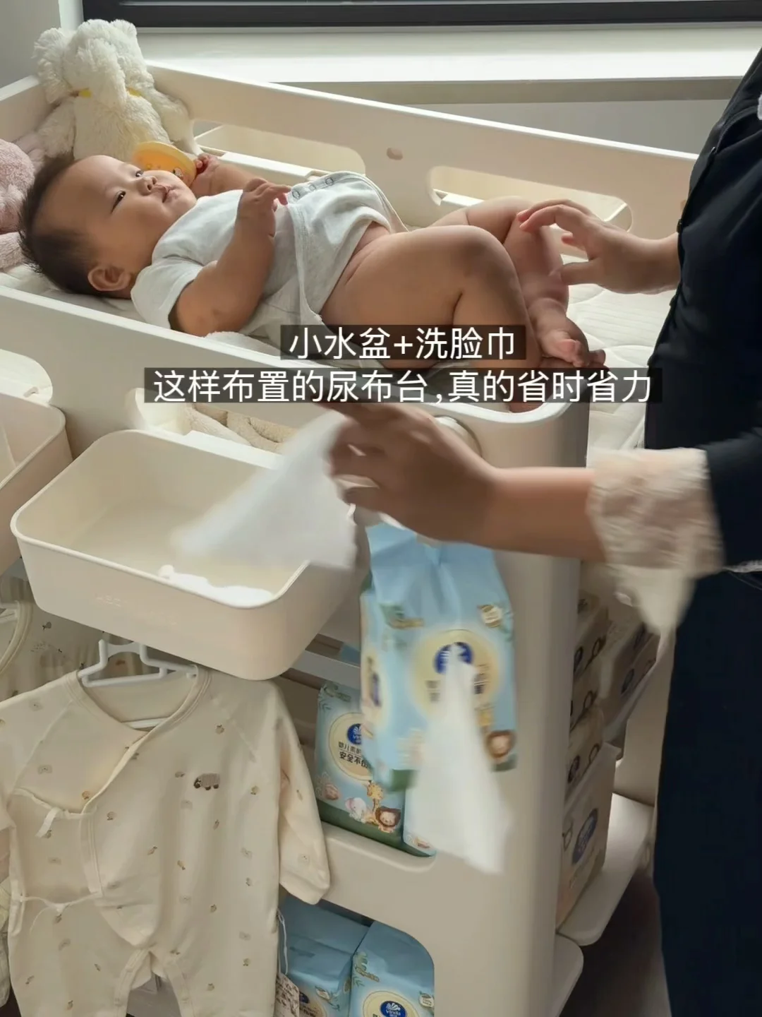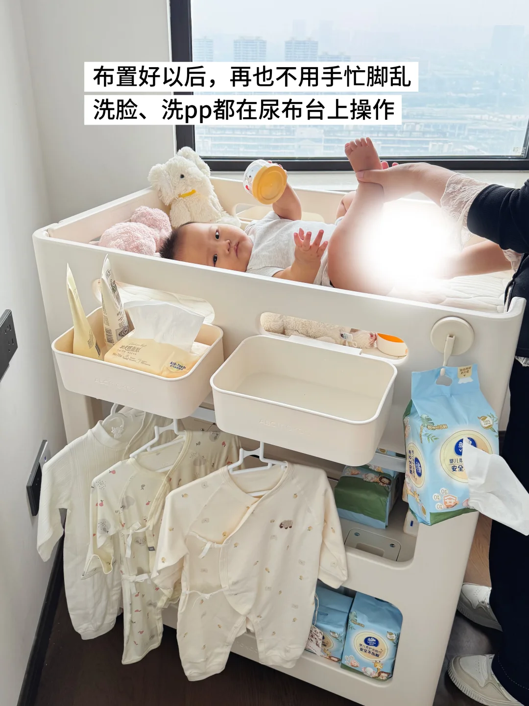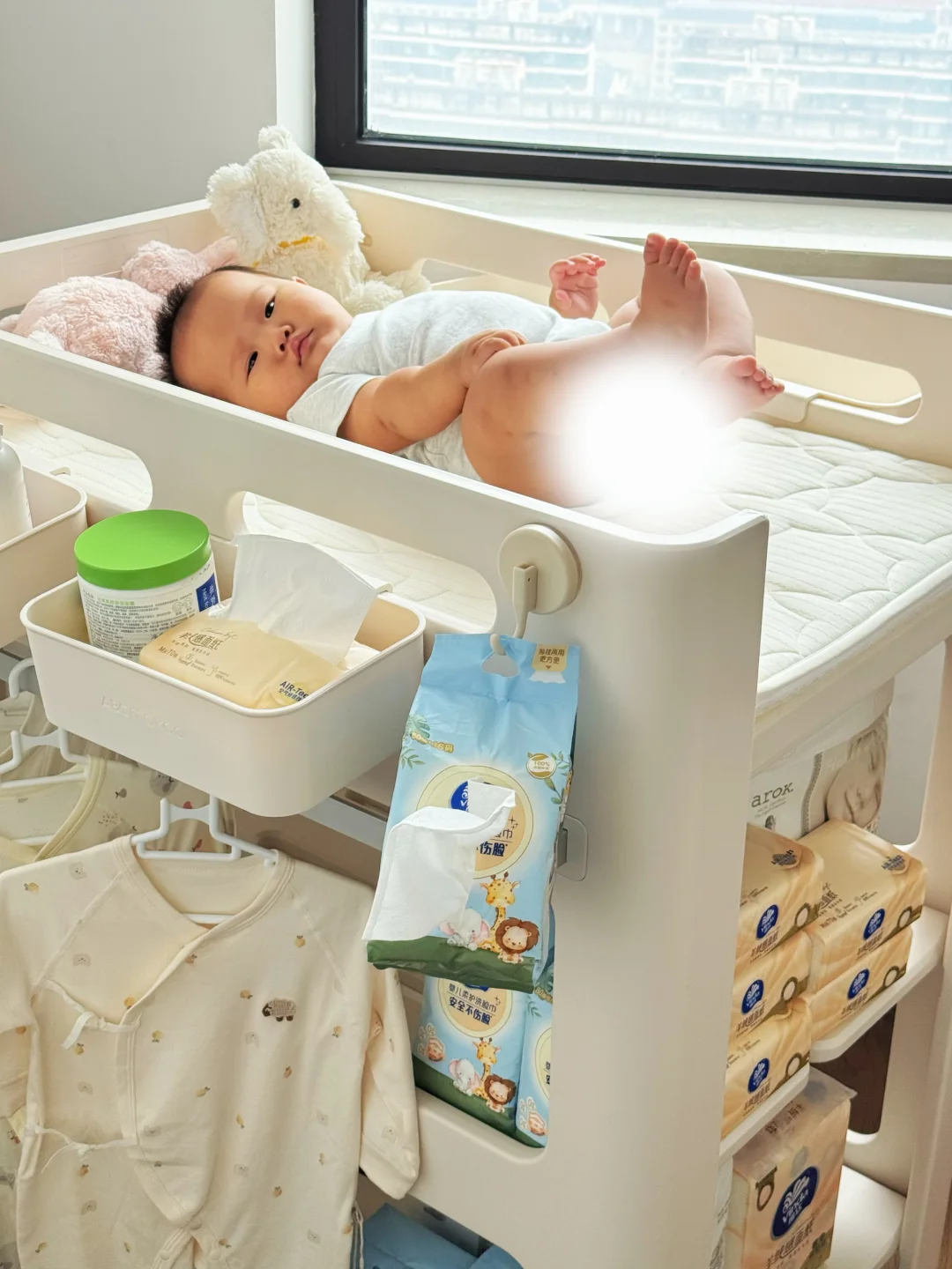 生娃最对的事:把尿布台变多功能带娃站,夜拼大床、日当尿布台,省空间超实用!从前台面乱糟糟,换尿布找东西崩溃;重新规划后超清爽: