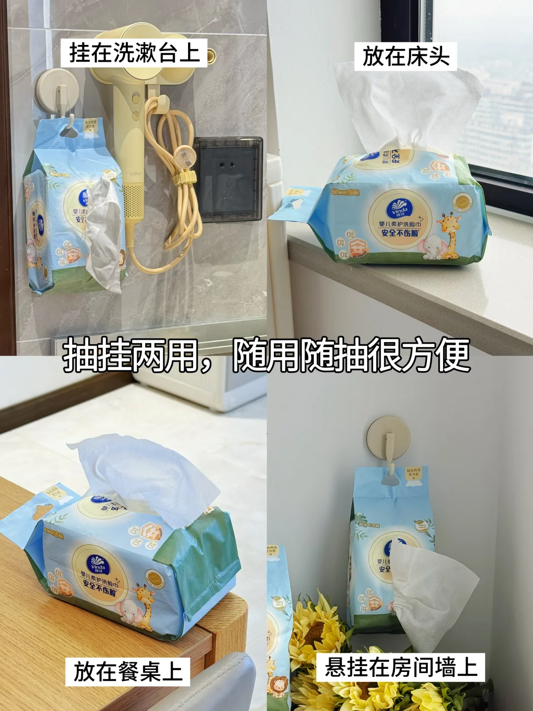 特地为宝宝设计的软乎平纹,不会像纹路款摩擦力太强的同时对宝宝清洁力也完全足够,擦脸擦pp一巾搞定,挂抽方便单手操作,用完还能擦玩具。