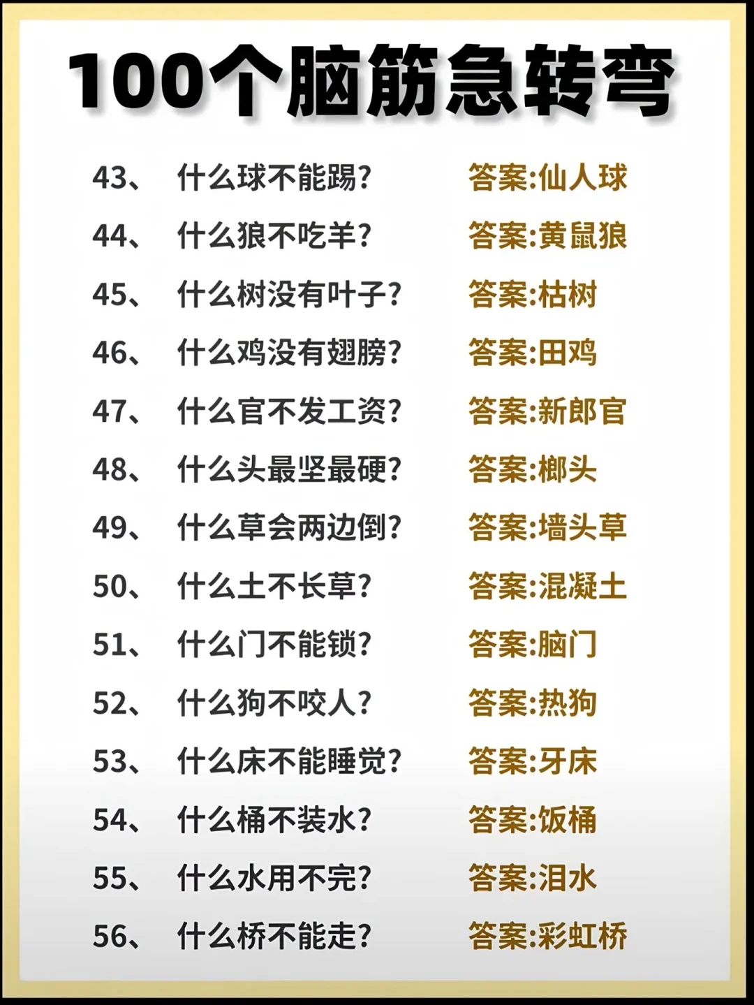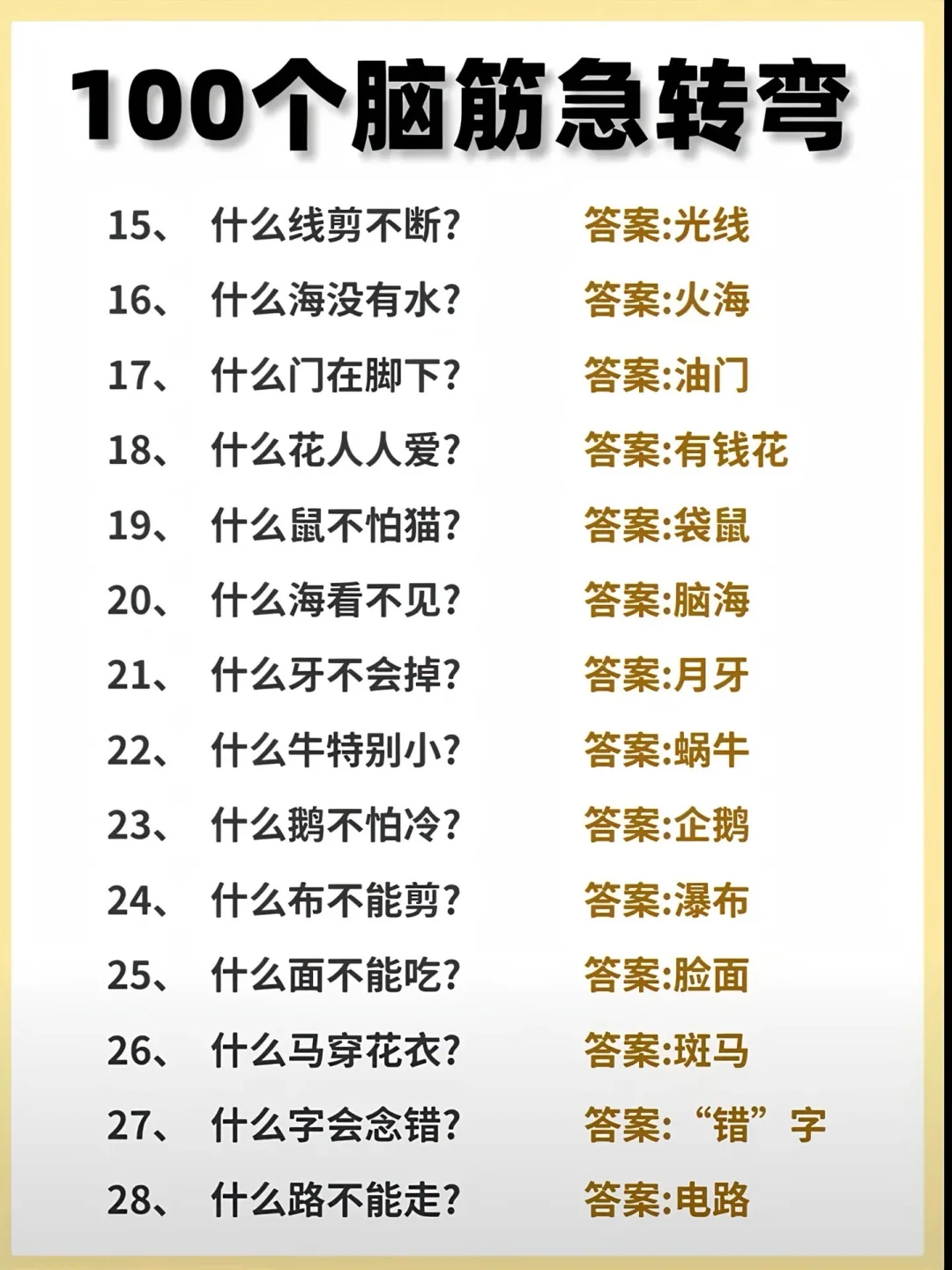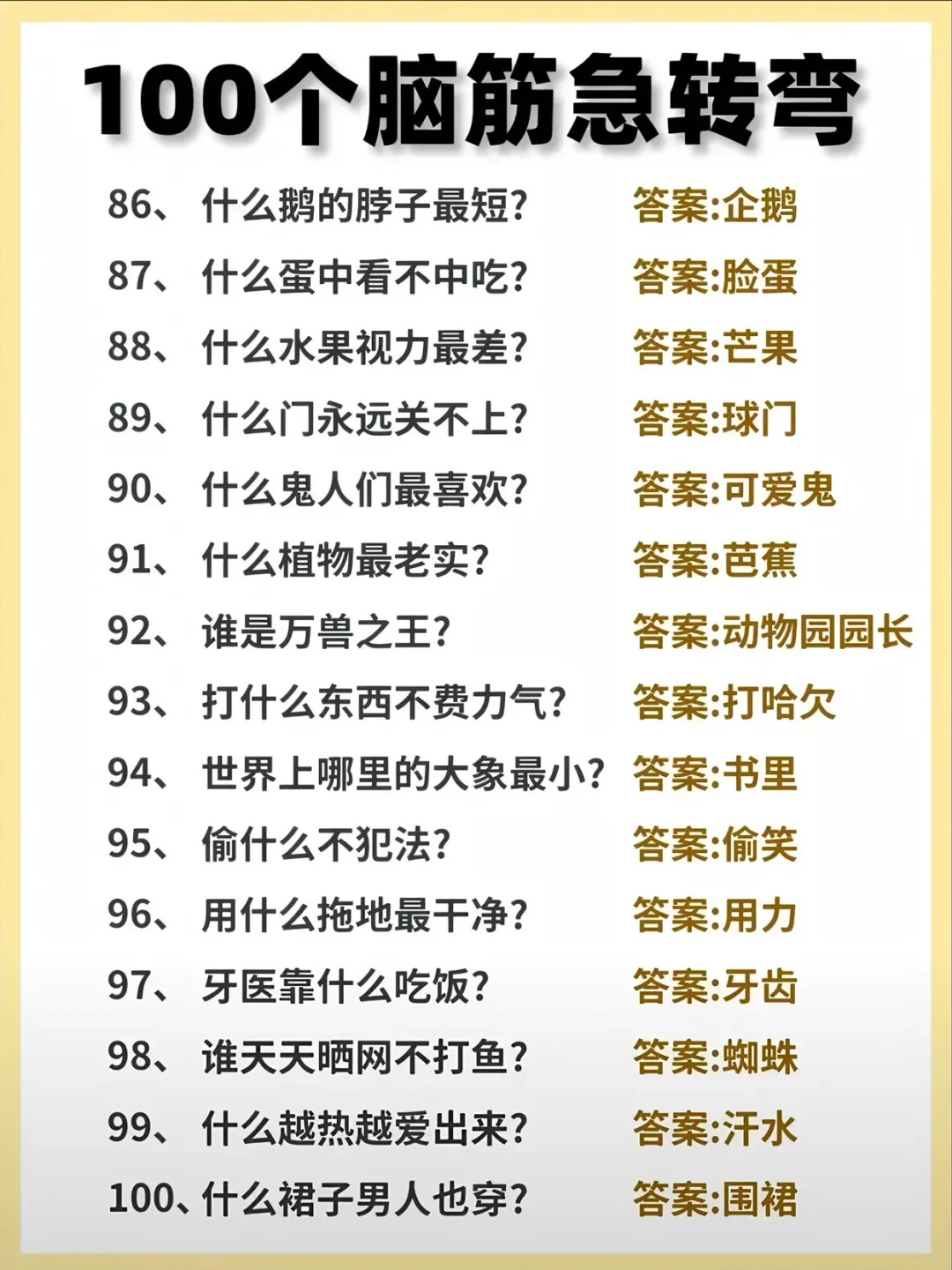 很多小学生嫌我出的脑筋急转弯不够难,今天就来100道最难的脑筋急转弯,6-12岁的小学生,有不服的就来挑战!