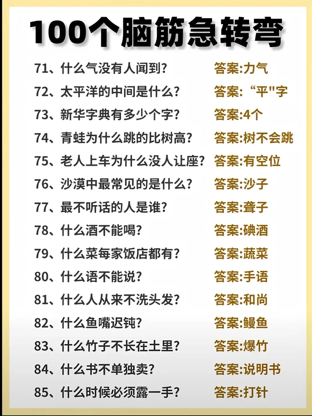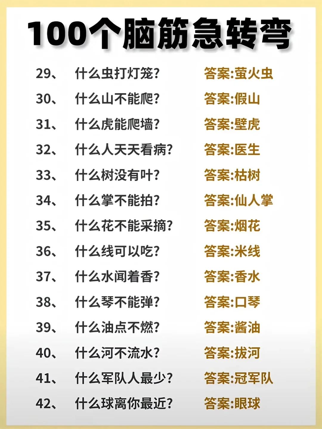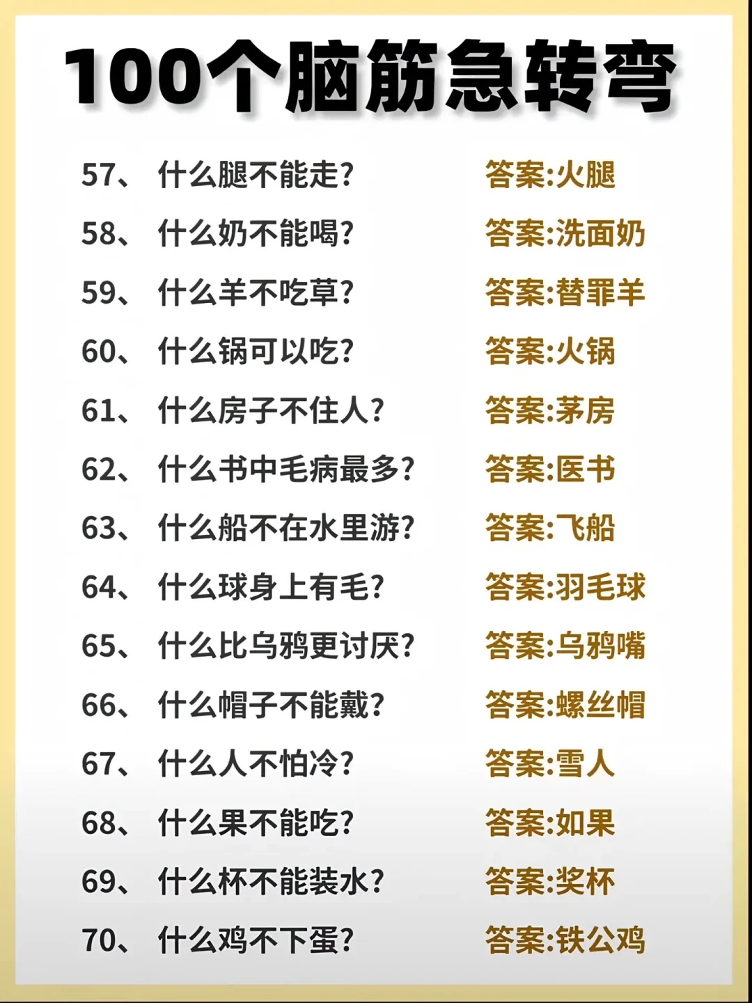 很多小学生嫌我出的脑筋急转弯不够难,今天就来100道最难的脑筋急转弯,6-12岁的小学生,有不服的就来挑战!