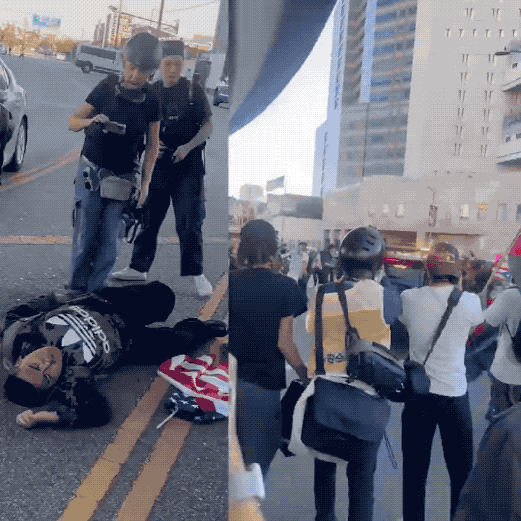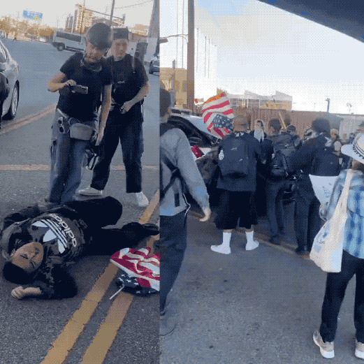 美国警车碾压示威者:现场一片混乱!在18日,美国加州洛杉矶警察局一辆警车在洛杉矶“拒绝国王”抗议活动中碾压了一名不愿让路的抗议者,现场马上出现了一堆记者来拍照,而周围民众也在纷纷拨打求救电话。更让人无语的是,由于警方控制不力,竟然相关道路上还有汽车通行,引发了大规模的交通堵塞。