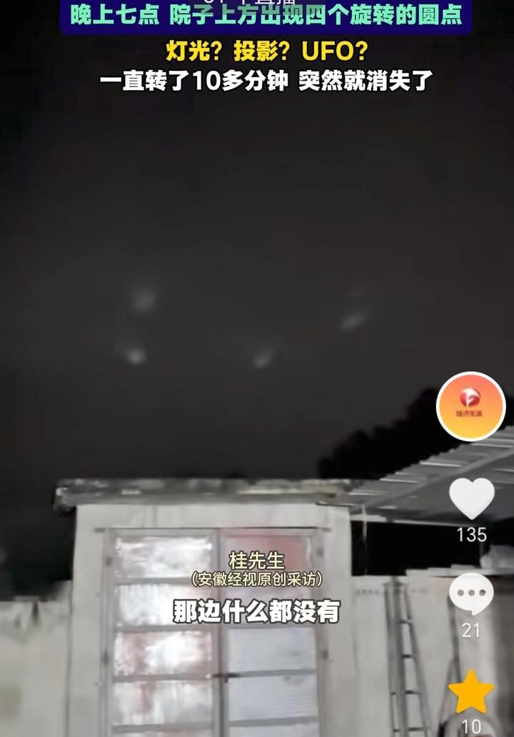 解释不清了!安徽蒙城,男子在院子上方发现四个旋转的圆点,转了十多分钟突然又消失了