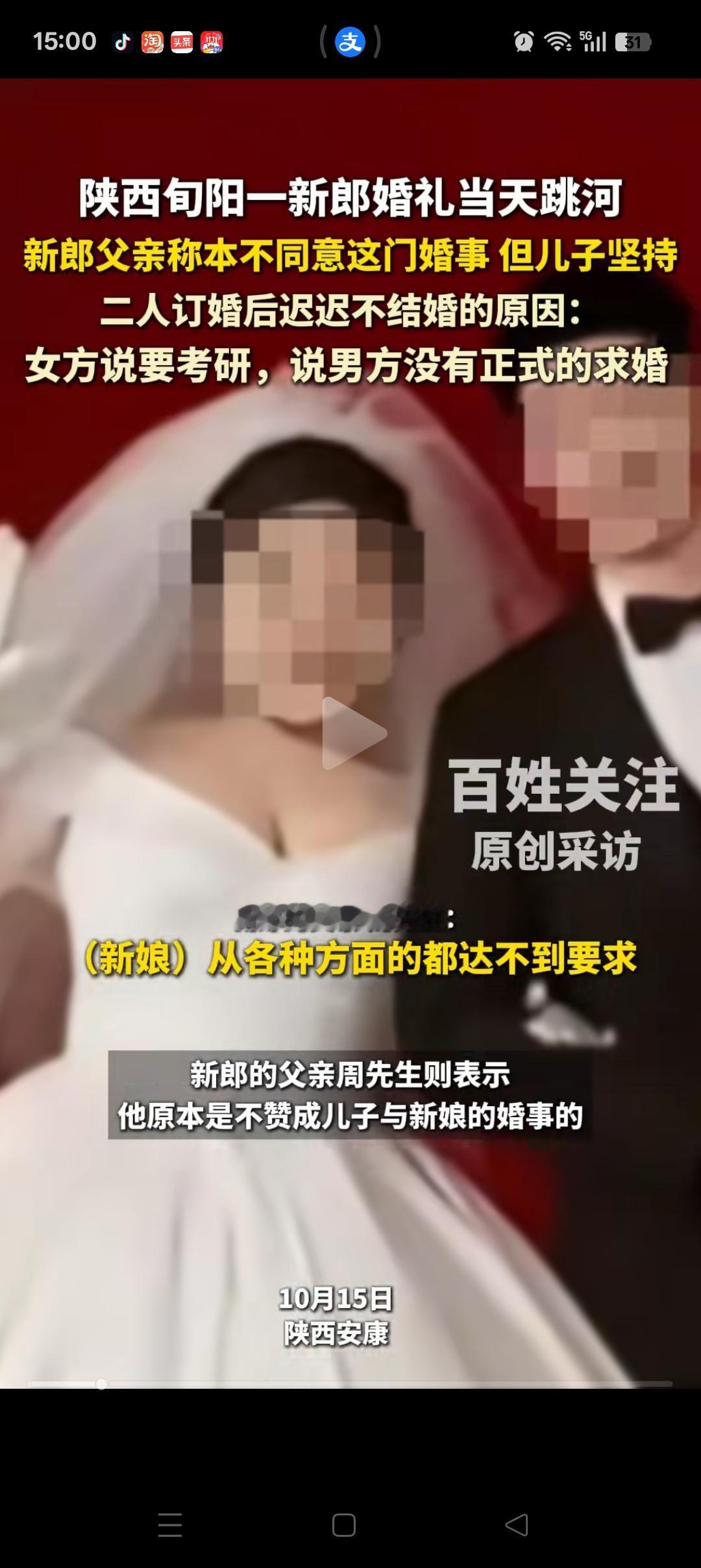 旬阳,新郎事件有了最新进展!男方已经拿回了彩礼和五金,也不打算和女方家里继续扯下去了。 这件事一开始,新郎的父亲并不同意,他觉得新娘各方面条件和他想的还有一定的差距,但是儿子坚持要娶,也就同意了。 后来,因为结婚的一些细节,女方妈妈挑理,觉得本来答应的8样礼品少了,变成了4样,不高兴。还有就是接她的车子晚了,表示不想去了 所以,新娘在车上一直抱怨新郎什么事都没做好。新郎也是全程低着头不敢说话,直到快下车时,流下了眼泪,就头也不回的跑了。 新郎的表姐当时也坐在车里,没拉住,想起来就流下了眼泪。 所以,整个事情从一开始就不是很愉快,到后来女方挑理,只可惜新郎没撑住,心疼[流泪][流泪]