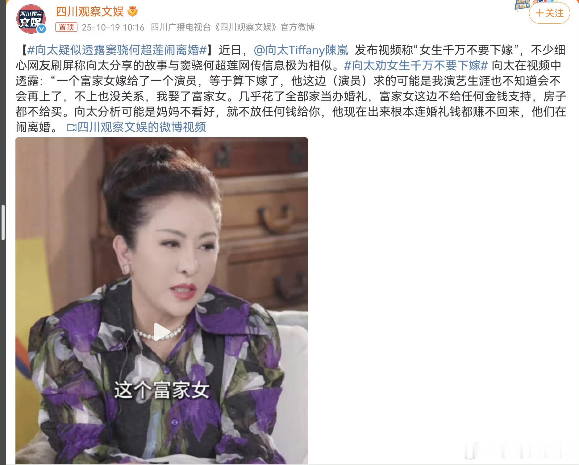 看了何穗的婚姻经历,我沉默了,原来与陈伟霆是她第二次婚姻,头婚25