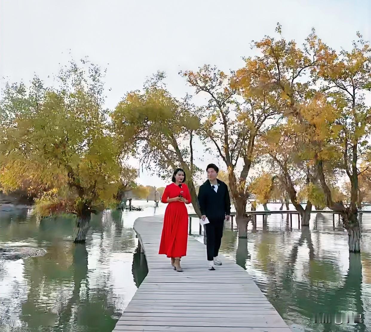 董宇辉新疆行第三天来到沙雅 嘉宾阿依吐孙老师在一片胡杨林中 身着一袭红衣款款走来 实在太美了 他们一直在说景色好美 我们看他们也很美 你们在桥上看风景 看风景的人在屏幕前看你们[耶] 沙雅县景区专门安排了歌舞表演 在千年不倒的胡杨林里跳舞 既美又飒,还特别浪漫 连枯了的胡杨都充满了生命力 这一趟看下来 还有什么烦恼啊 董宇辉的阅山河 一定要一直一直办下去 帮我们踩点 以后要按着这个路线 好好的玩一遍[耶][比心]