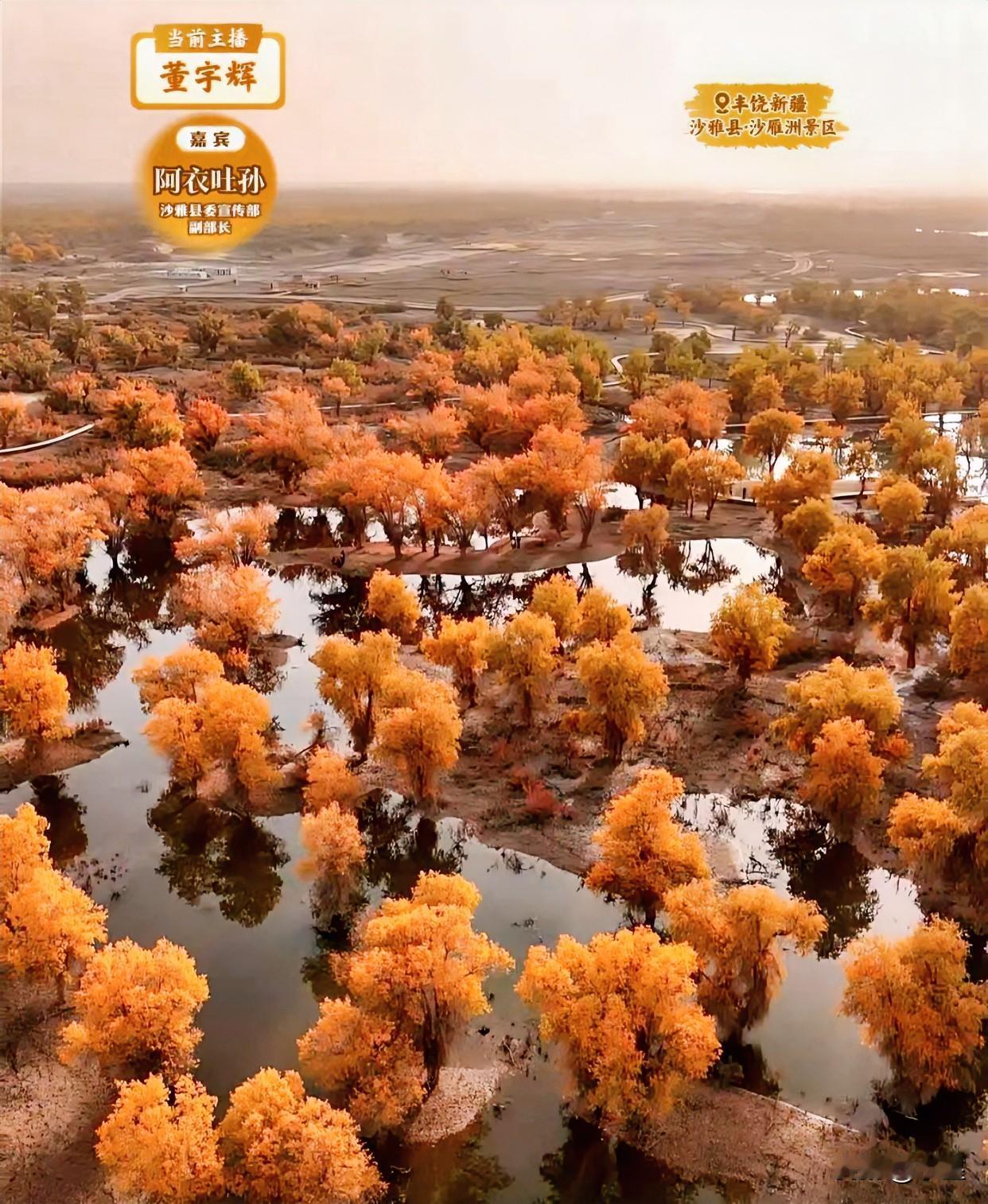 董宇辉新疆行第三天来到沙雅 嘉宾阿依吐孙老师在一片胡杨林中 身着一袭红衣款款走来