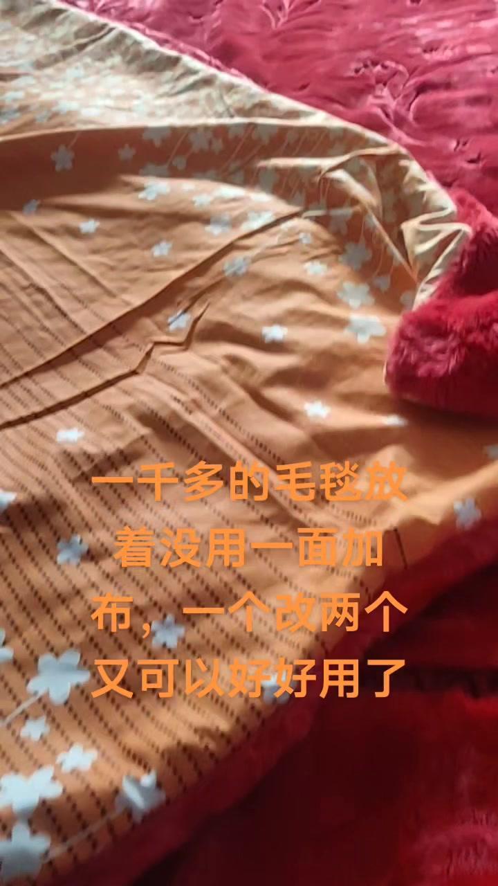 1️⃣准备材料:旧毛毯+一块新布料(我用的是之前剩下的床单布),剪刀、针线、尺子备用。 2️⃣裁剪拼接:把旧毛毯分片,按想要的被子尺寸裁剪,新布料缝在其中一片毛毯上,边缘用回针法缝牢固,防止脱线。 3️⃣完成收纳:缝好后翻过来整理平整,一床厚实的新被子就做好了,剩余的边角料还能做个小抱枕,太实用啦~