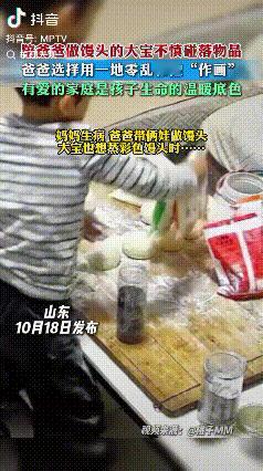 情绪稳定!山东,妈妈生病在睡觉,爸爸带大宝做馒头,结果大宝不慎碰落物品,结果爸爸
