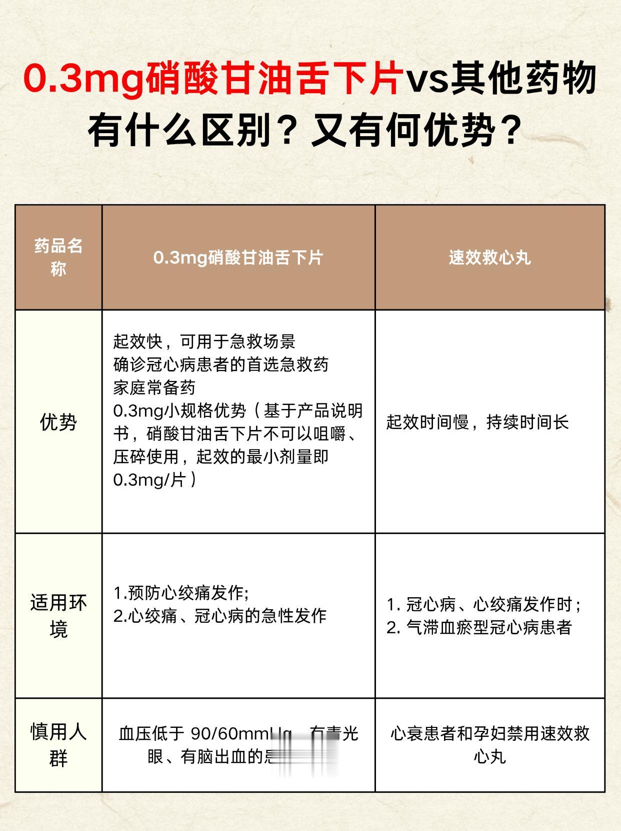 0.3mg硝酸甘油舌下片和速效救心丸的区别。你都了解多少?在心绞痛发作...