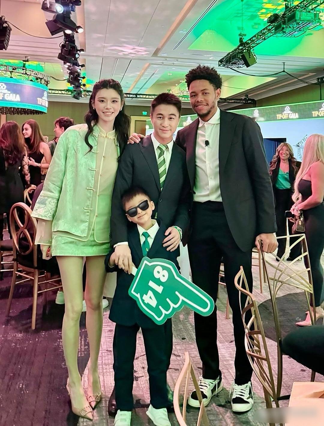 奚梦瑶和老公儿子一起参加慈善晚宴,她的腿又长又白,状态超好!儿子的身材高挑,笑起来好像她啊!