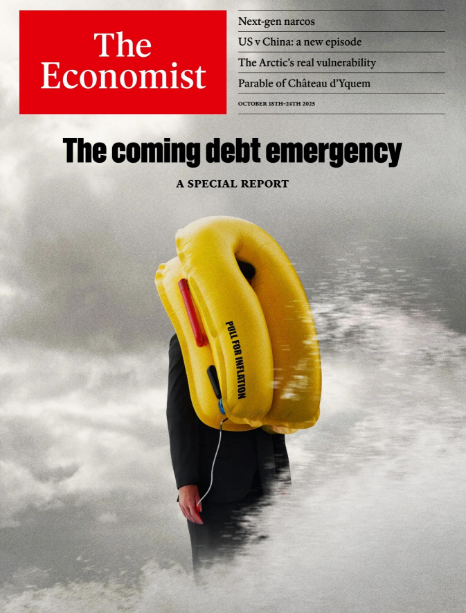 最近提到债务的观点挺多,达里奥昨天访谈、讲到法币本质是债务,而债务人负债高企。最新一期的经济学人,封面社论也在思考债务的持续会带来什么,比如通胀洗债。