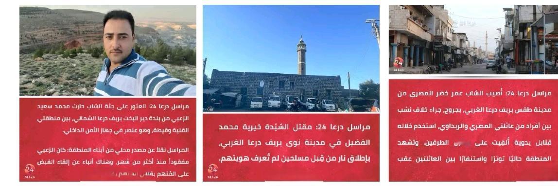 叙利亚南方德拉省发生多起新的暴力事件:一名HTS成员被绑架后处决、一名妇女被暗杀身亡、一名男子在家庭枪战中受伤。