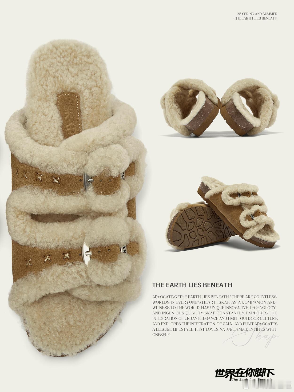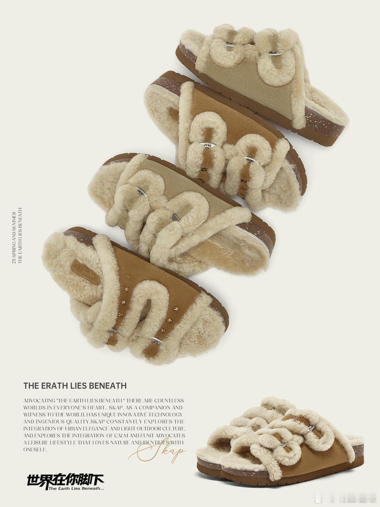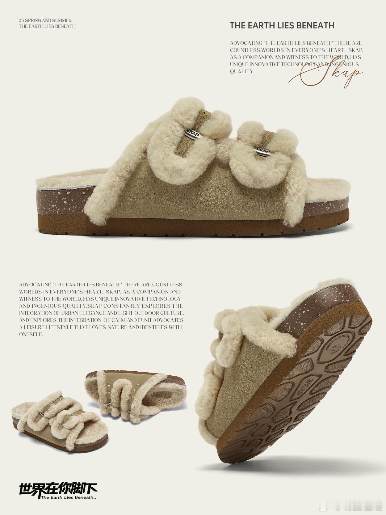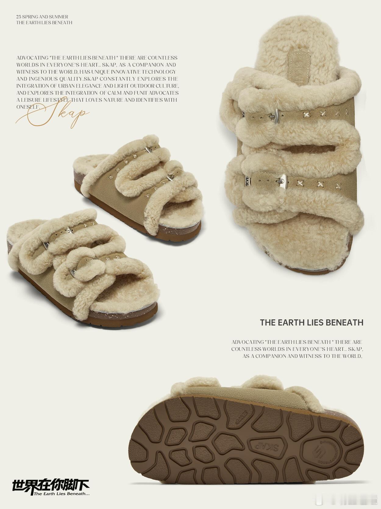 这双来自SKAP品牌的春夏款毛绒拖鞋,完美诠释了“世界在你脚下”的舒适理念。鞋身