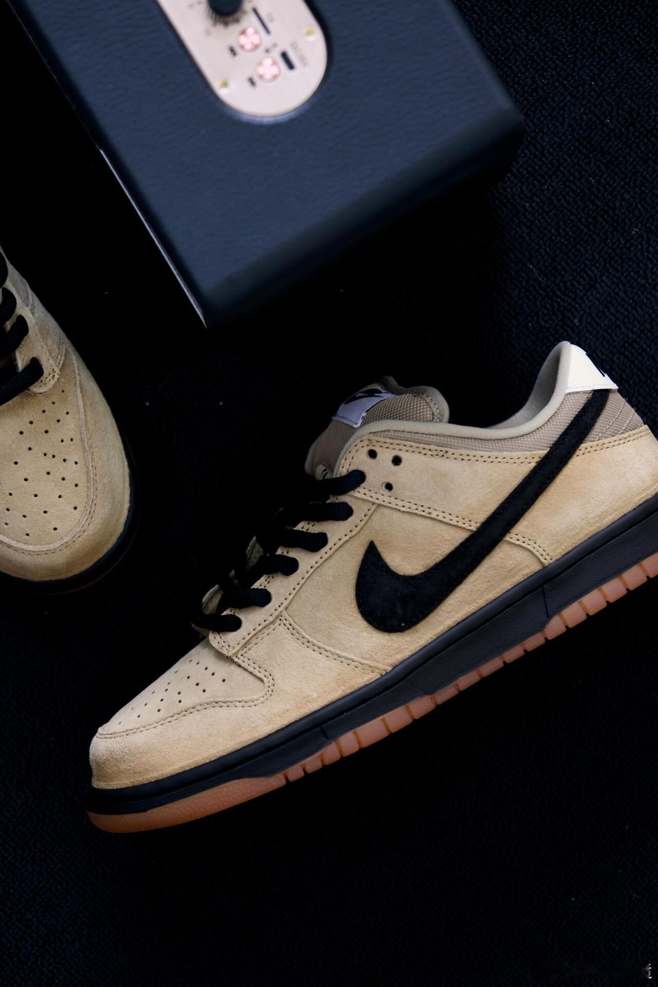 这双Nike Dunk SB Low以其独特的复古质感脱颖而出。鞋面采用浅棕色优质翻毛皮,触感丰富且历久弥新,与经典的黑色Swoosh标识形成低调对比。黑色鞋带与生胶色外底进一步强化了整体的复古基调,而棕色外底边缘的细节则增添了层次感。作为一款滑板鞋,它不仅继承了Dunk系列的经典轮廓,更在材质和色彩搭配上彰显了沉稳内敛的街头风格。整体设计摒弃浮夸,用大地色系营造出高级、百搭且充满质感的潮流单品,非常适合日常搭配。时尚鞋履