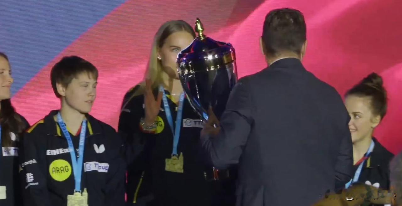 2025年欧洲乒乓球团体锦标赛 颁奖嘉宾:奖杯给谁呢? 教练&尼娜:指指考夫蔓 考夫蔓:🙋🏻♀️😂 2025.10.19