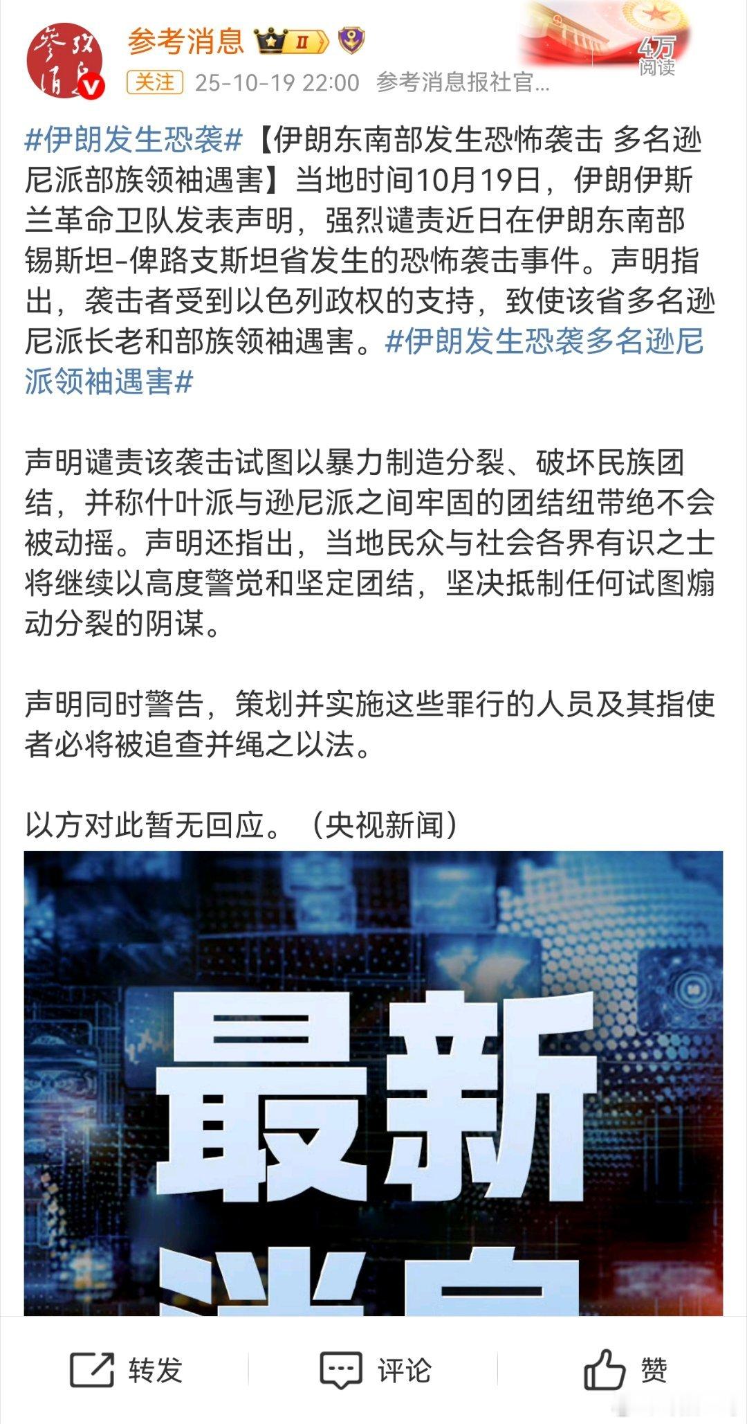 伊朗突发恐袭:地缘暗战与教派团结的双重博弈当地时间10月19日,伊朗东南部锡斯