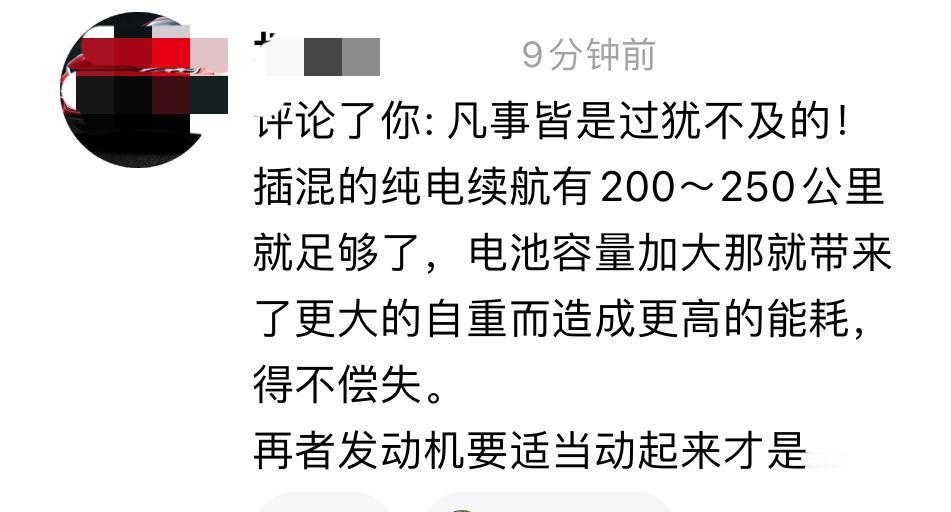 关于插混和增程要不要上大电池 网友有话说: 有人说大电池过犹不及 有人说纯电20